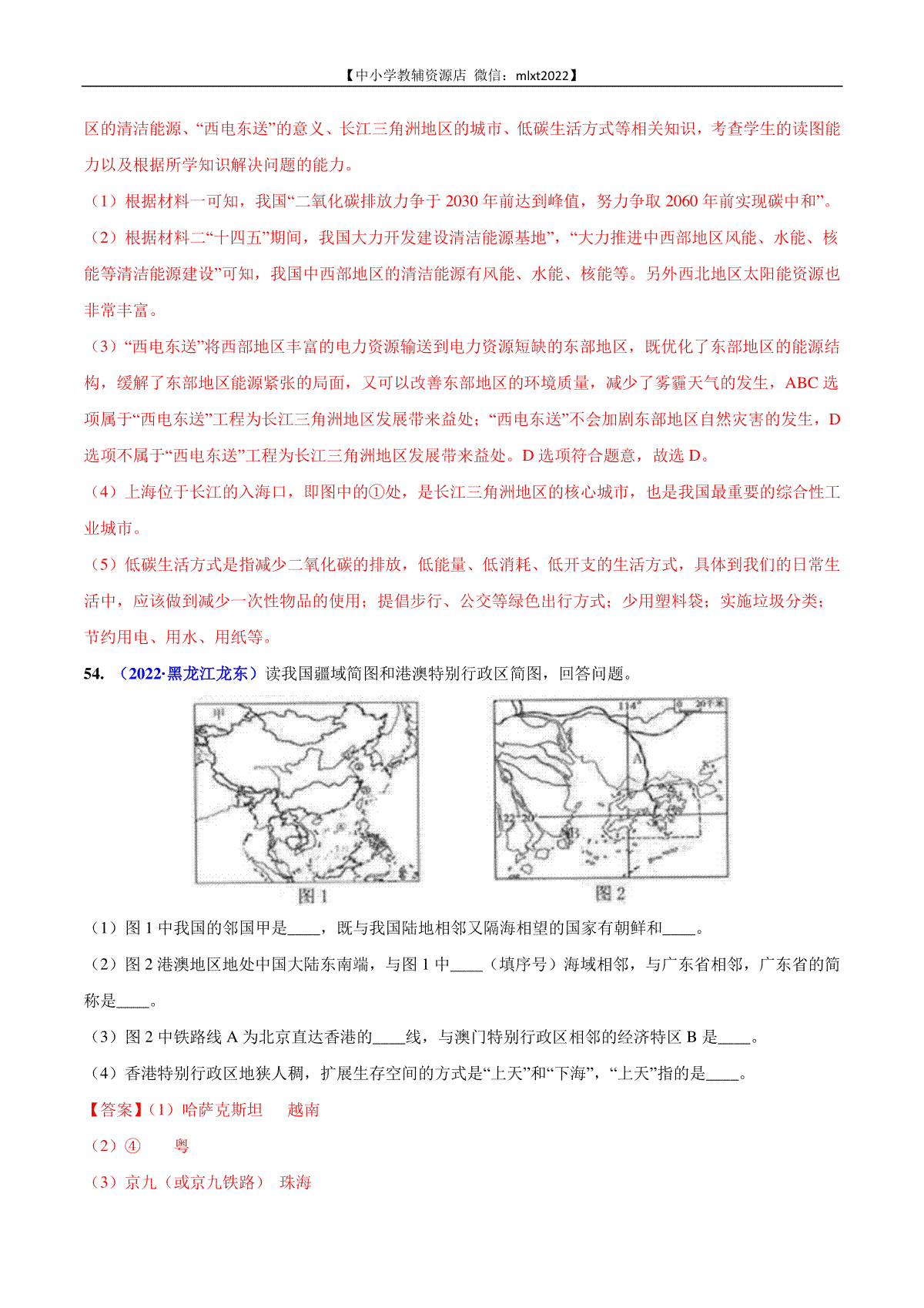 5.第1期专题13 中国的地理差异2022年中考地理真题分项汇编(全国通用)(解析版)