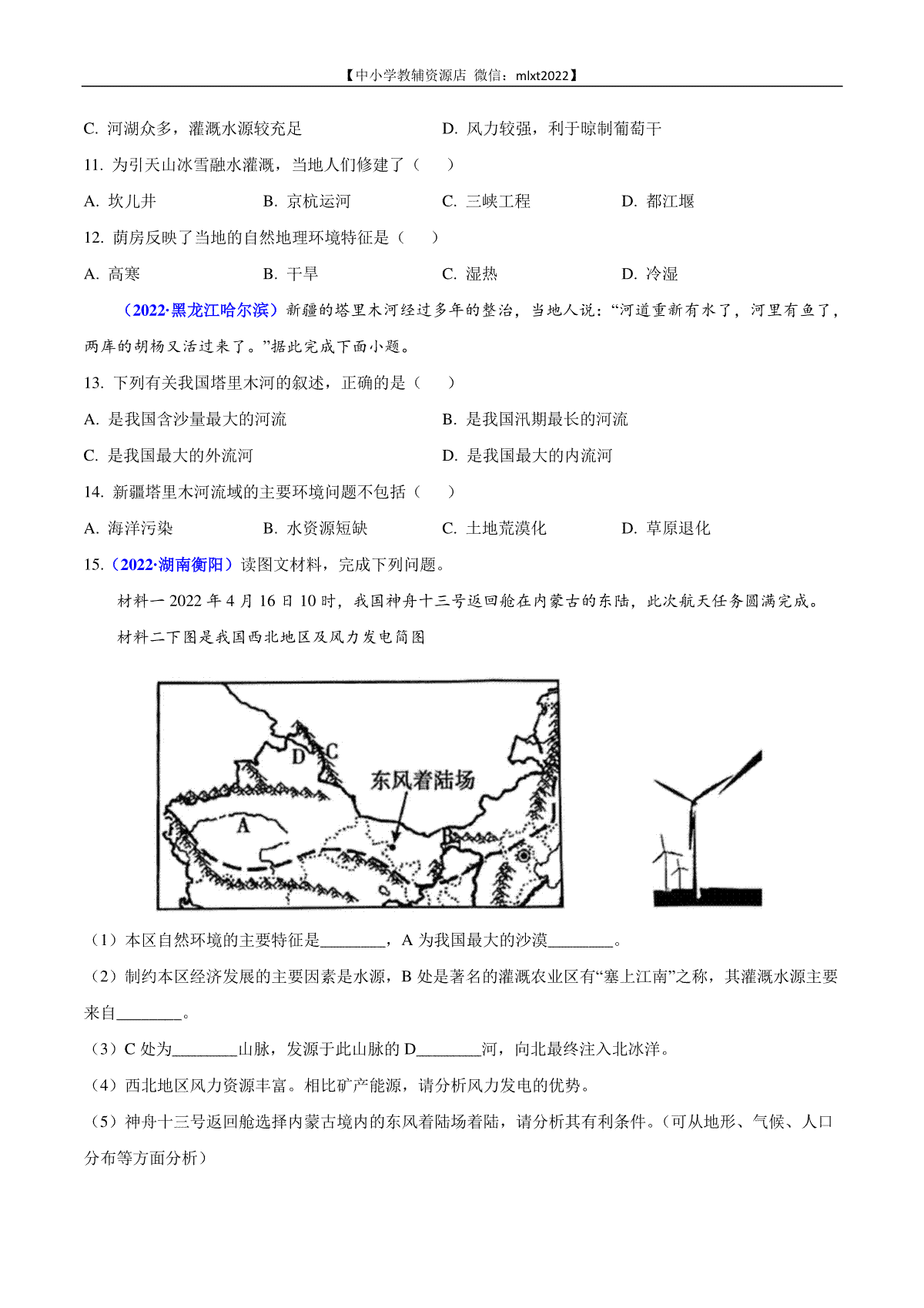 1.第1期专题16 西北地区和青藏地区2022年中考地理真题分项汇编(全国通用)(原卷版)