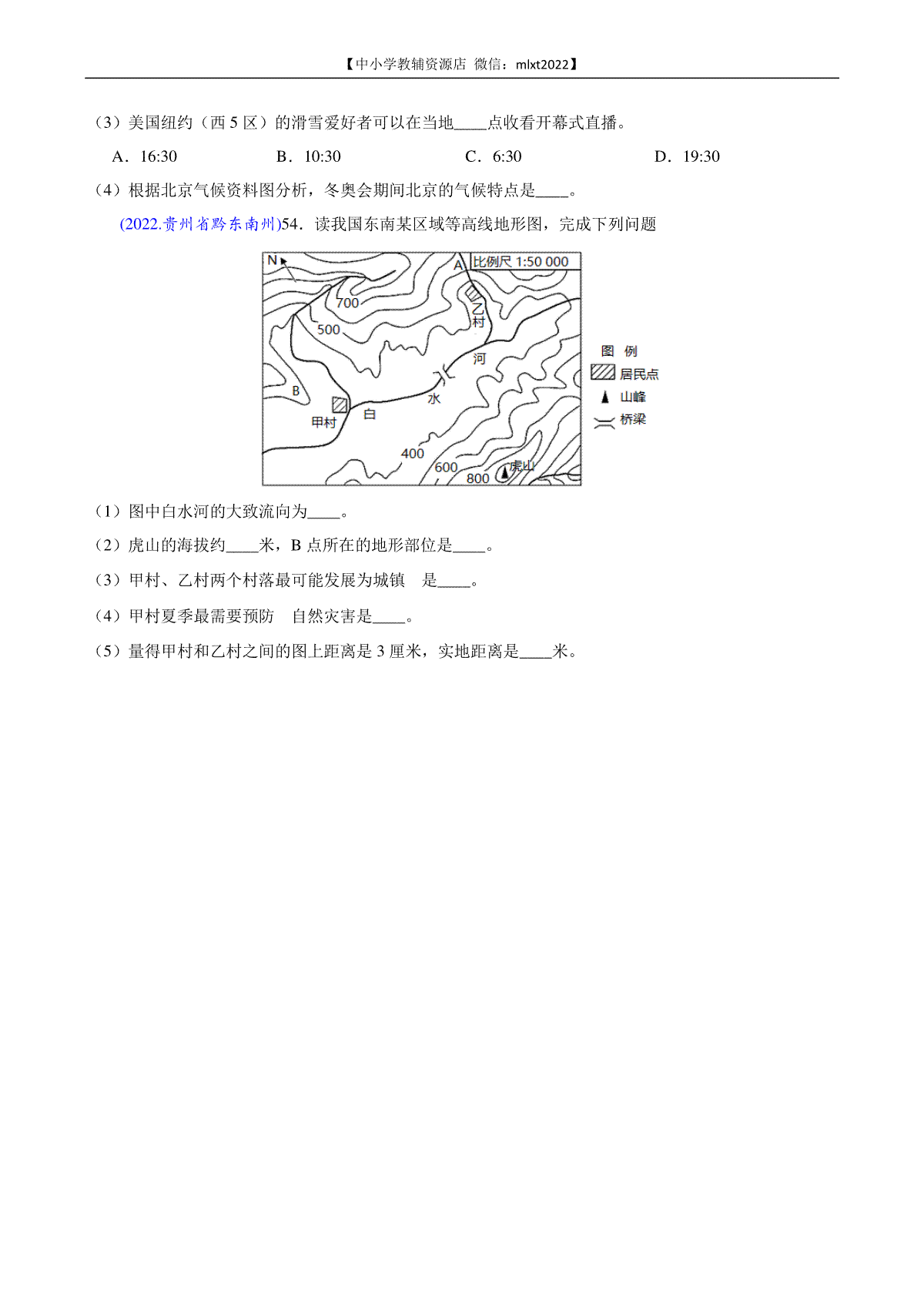 1.第3期专题01 地球与地图-2022年中考地理真题分项汇编(全国通用)(原卷版)