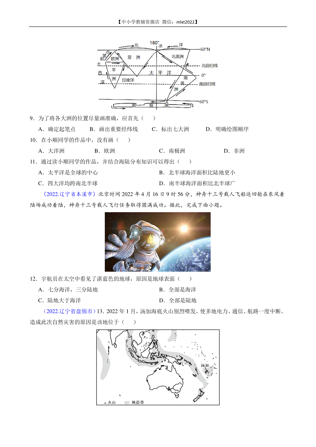1.第3期专题02 陆地与海洋-2022年中考地理真题分项汇编(全国通用)(原卷版)