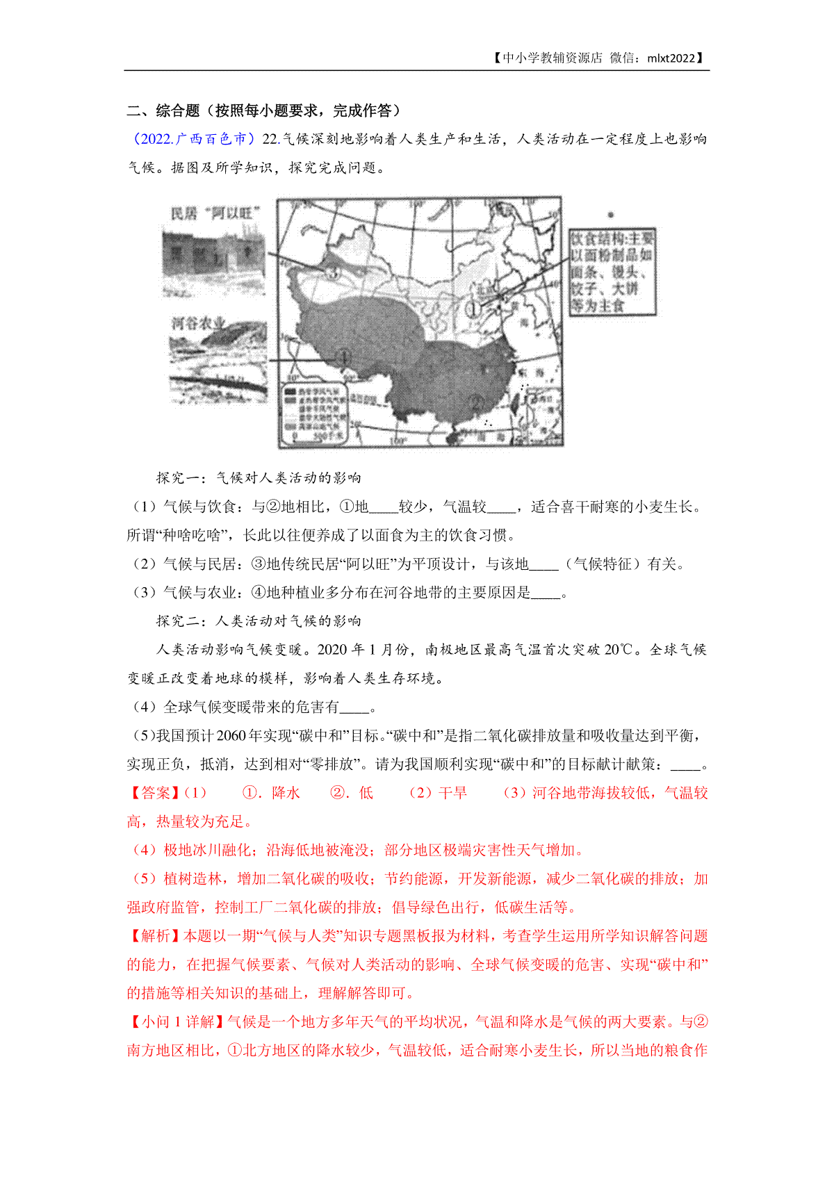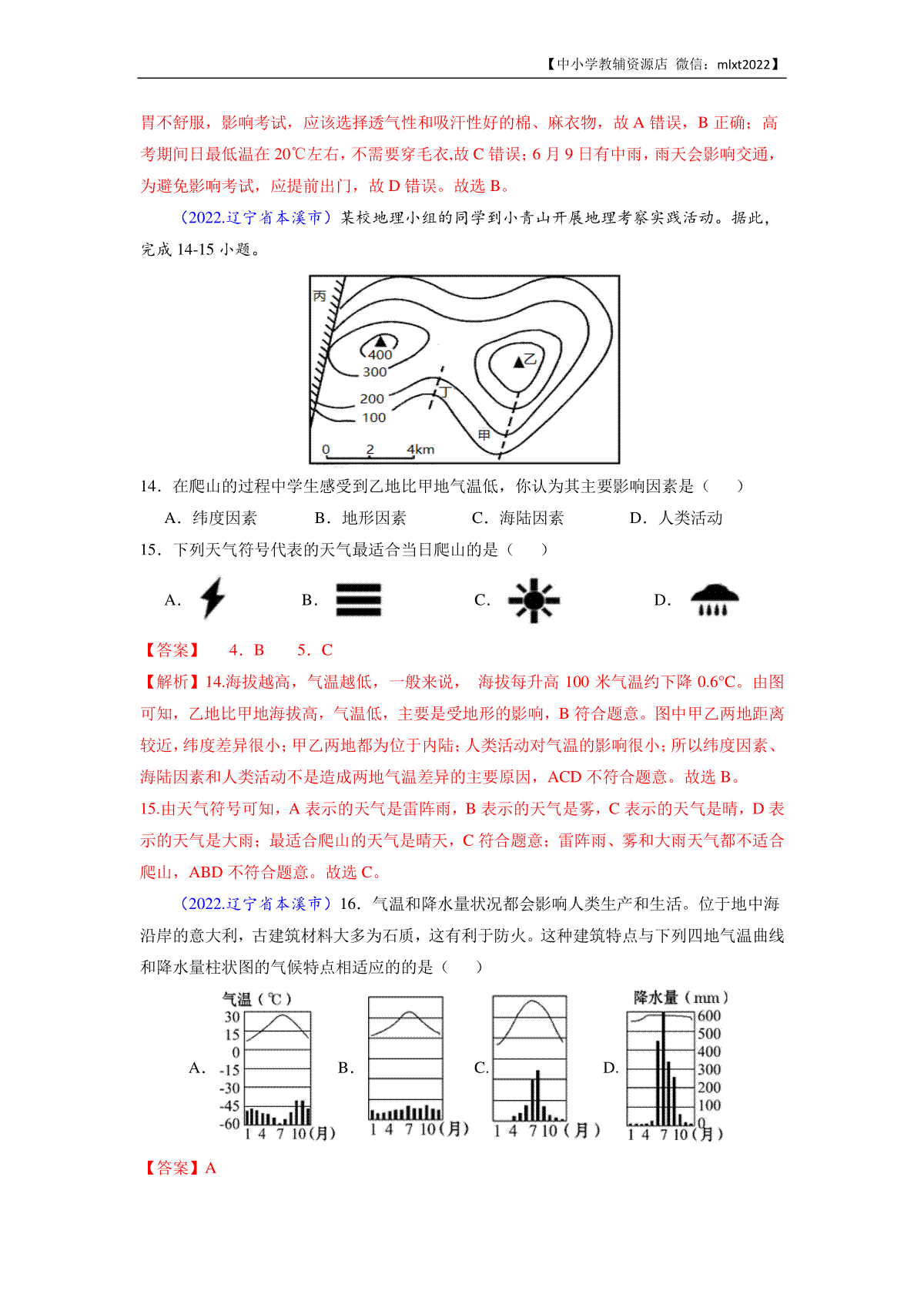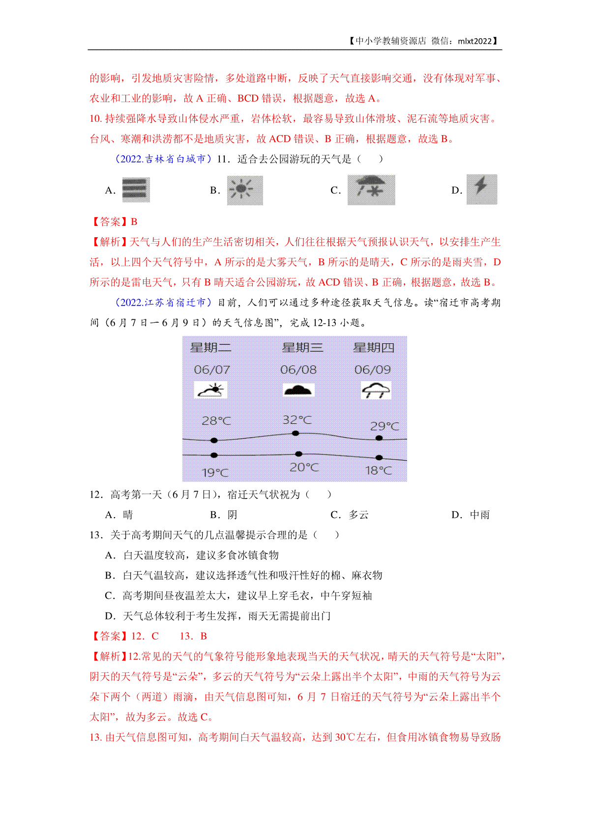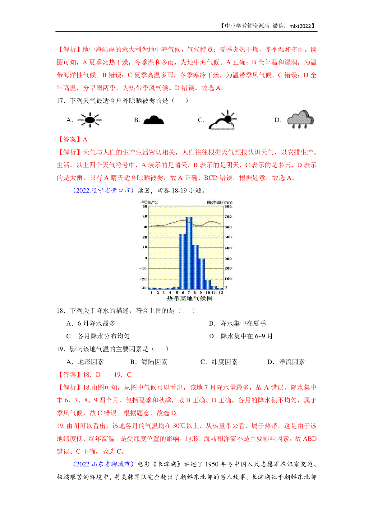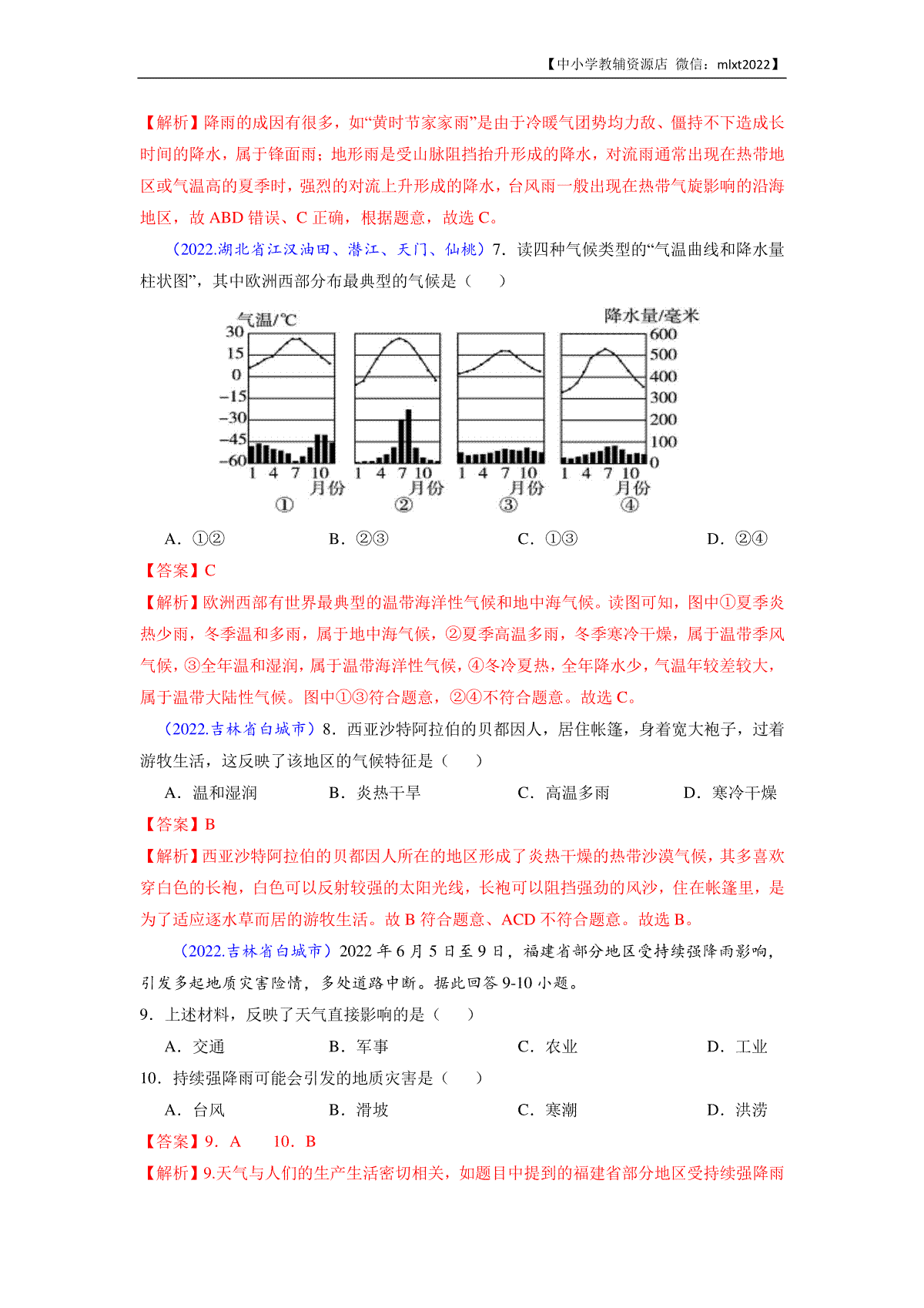 一、第3期专题03 天气与气候-2022年中考地理真题分项汇编(全国通用)(解析版)