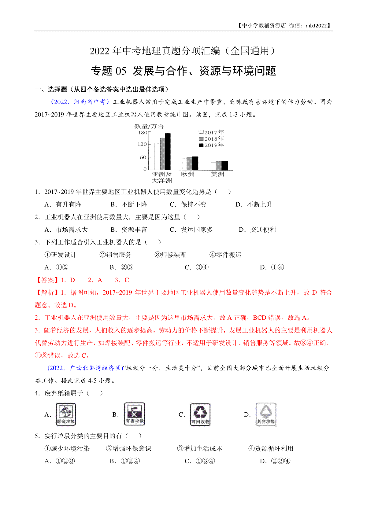 1.第3期专题05 发展与合作、资源与环境问题-2022年中考地理真题分项汇编(全国通用)(解析版)