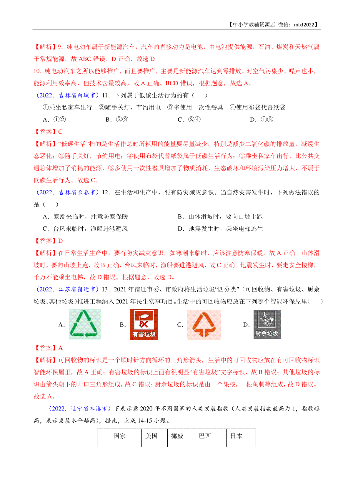 一、第3期专题05 发展与合作、资源与环境问题-2022年中考地理真题分项汇编(全国通用)(解析版)