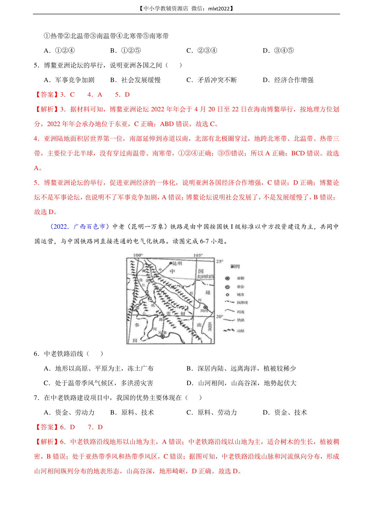 1.第3期专题06 亚洲、我们邻近的地区和国家-2022年中考地理真题分项汇编(全国通用)(解析版)