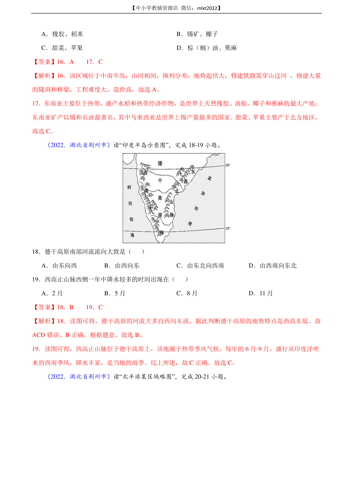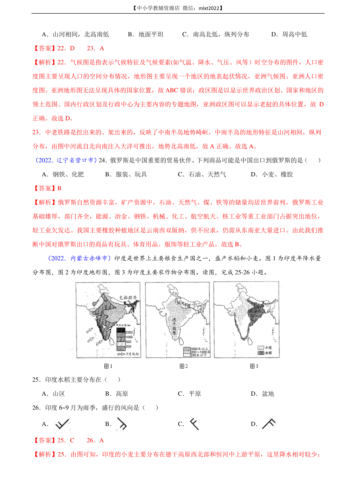 一、第3期专题06 亚洲、我们邻近的地区和国家-2022年中考地理真题分项汇编(全国通用)(解析版)