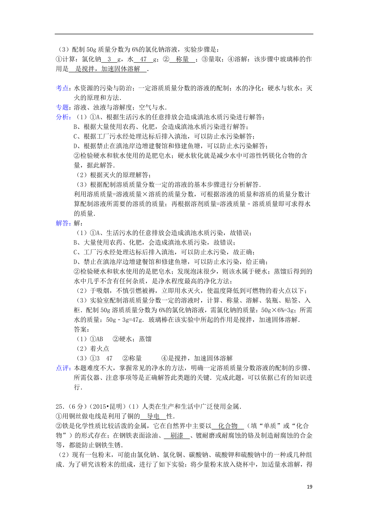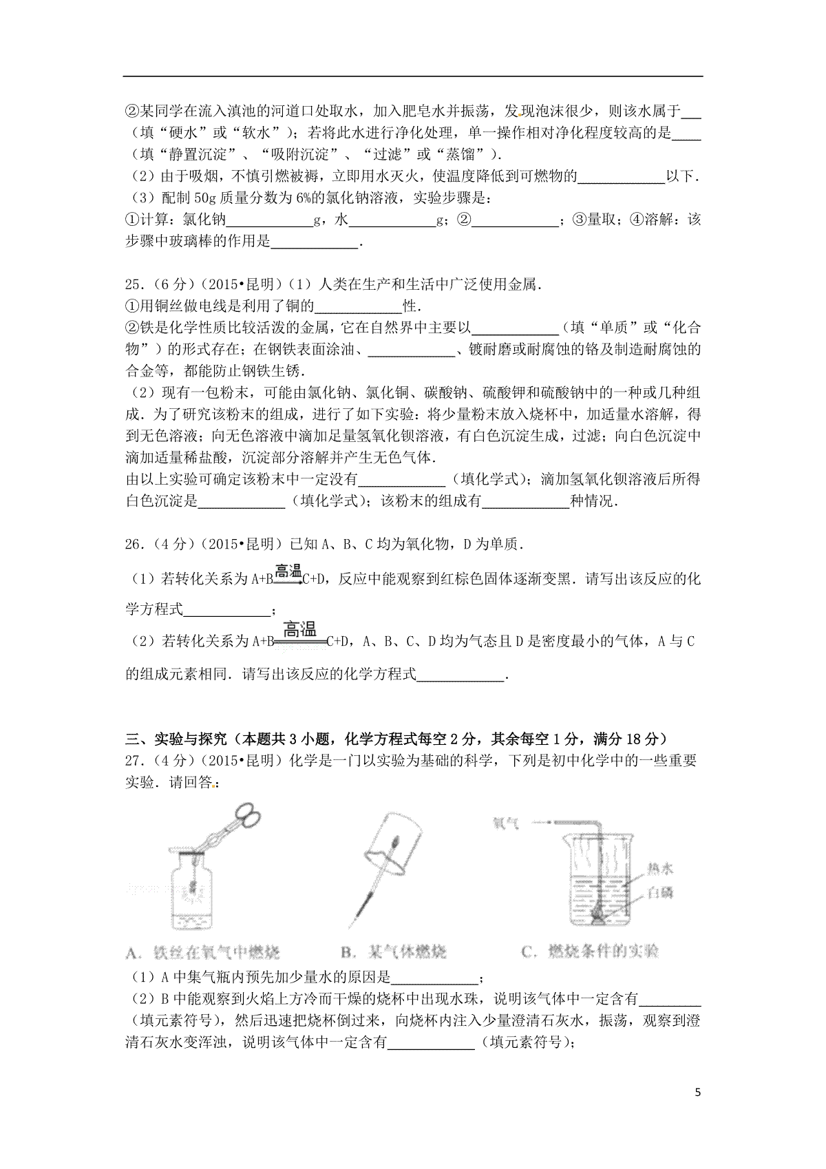 如果你想下载云南省昆明市2015年中考化学真题试题(含解析)DOC或PDF版,请点击本文末链接!
