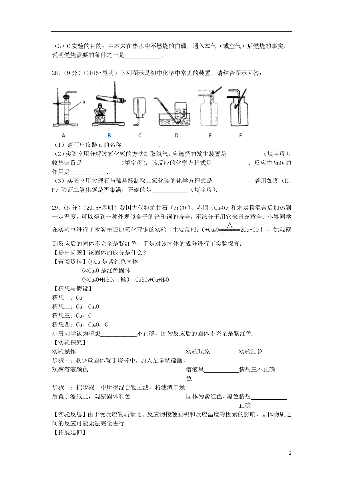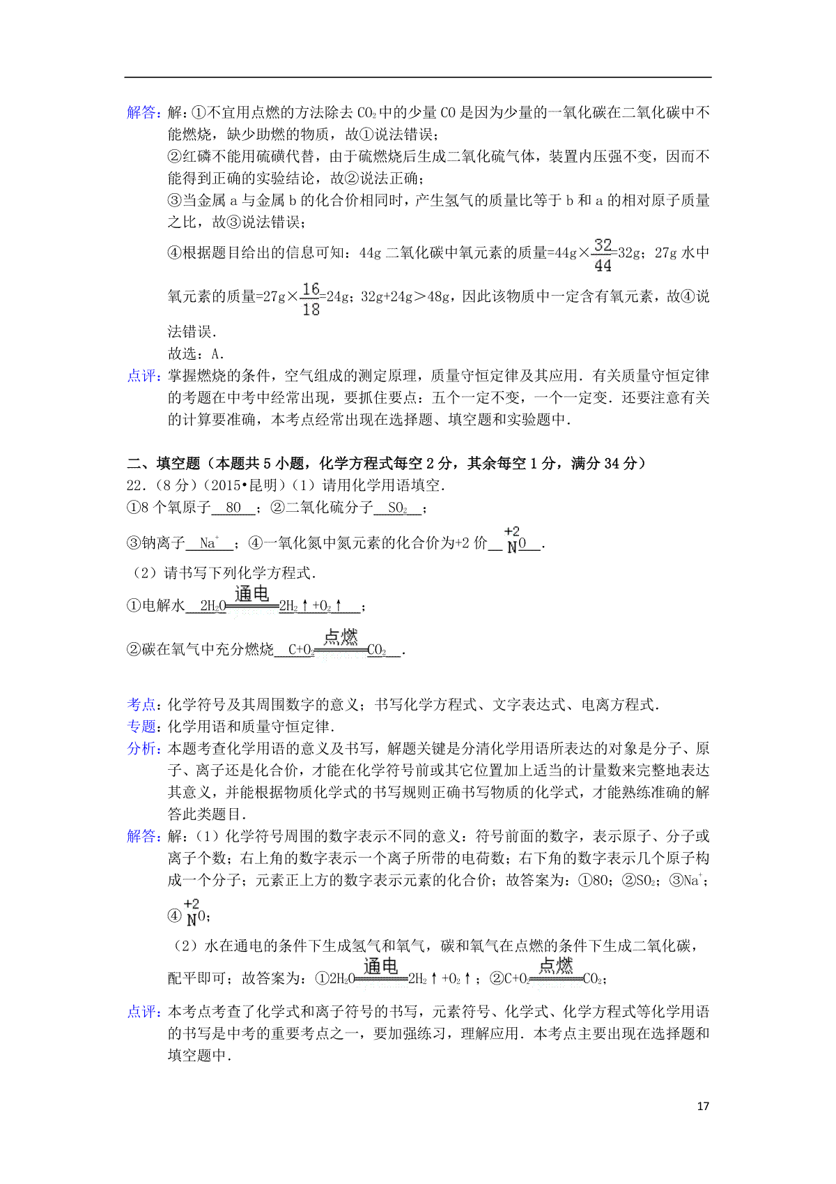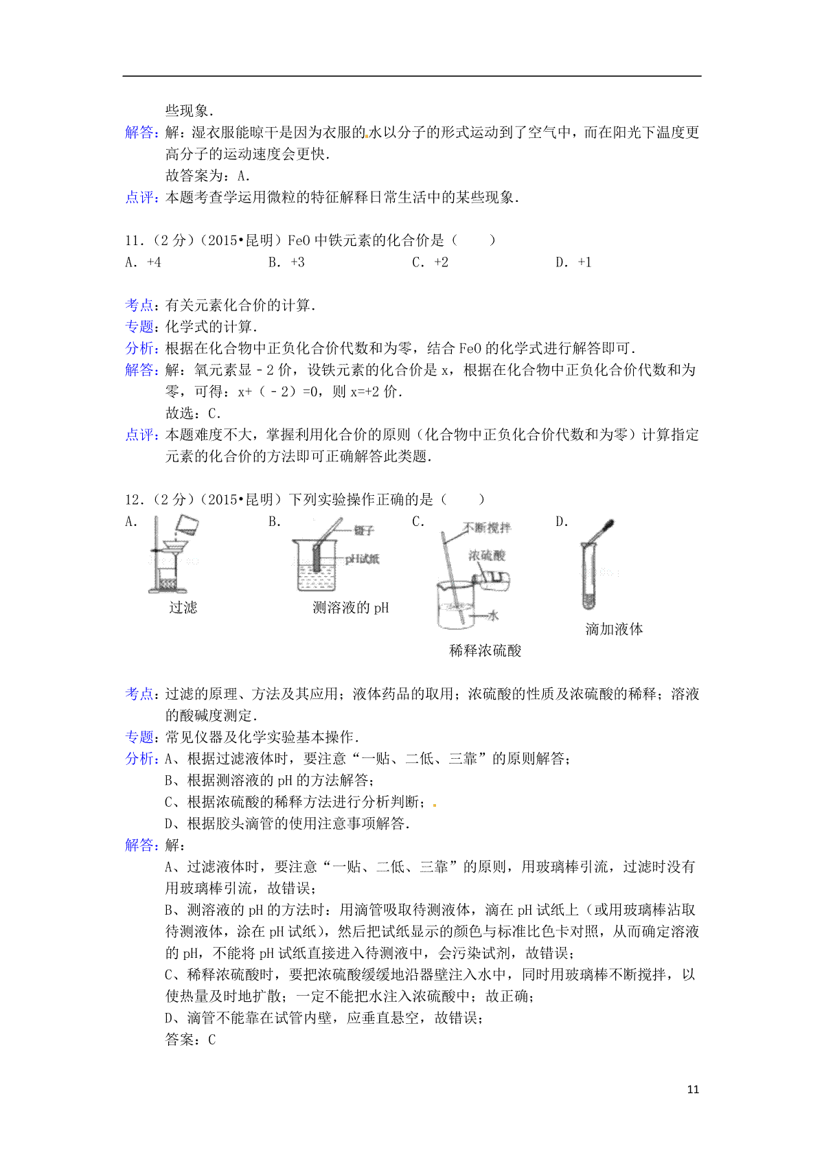 一、云南省昆明市2015年中考化学真题试题(含解析)