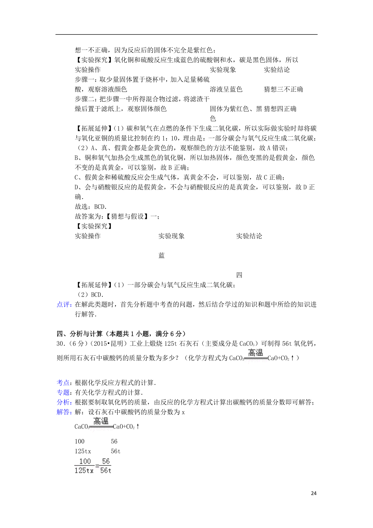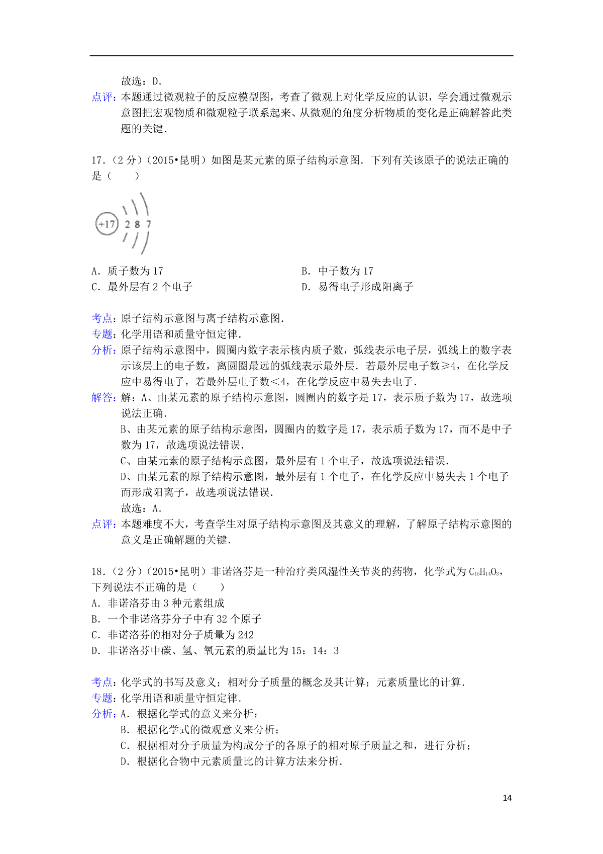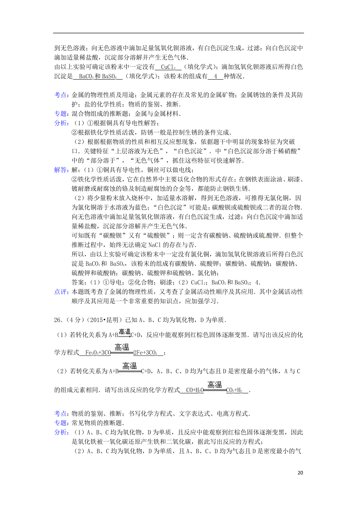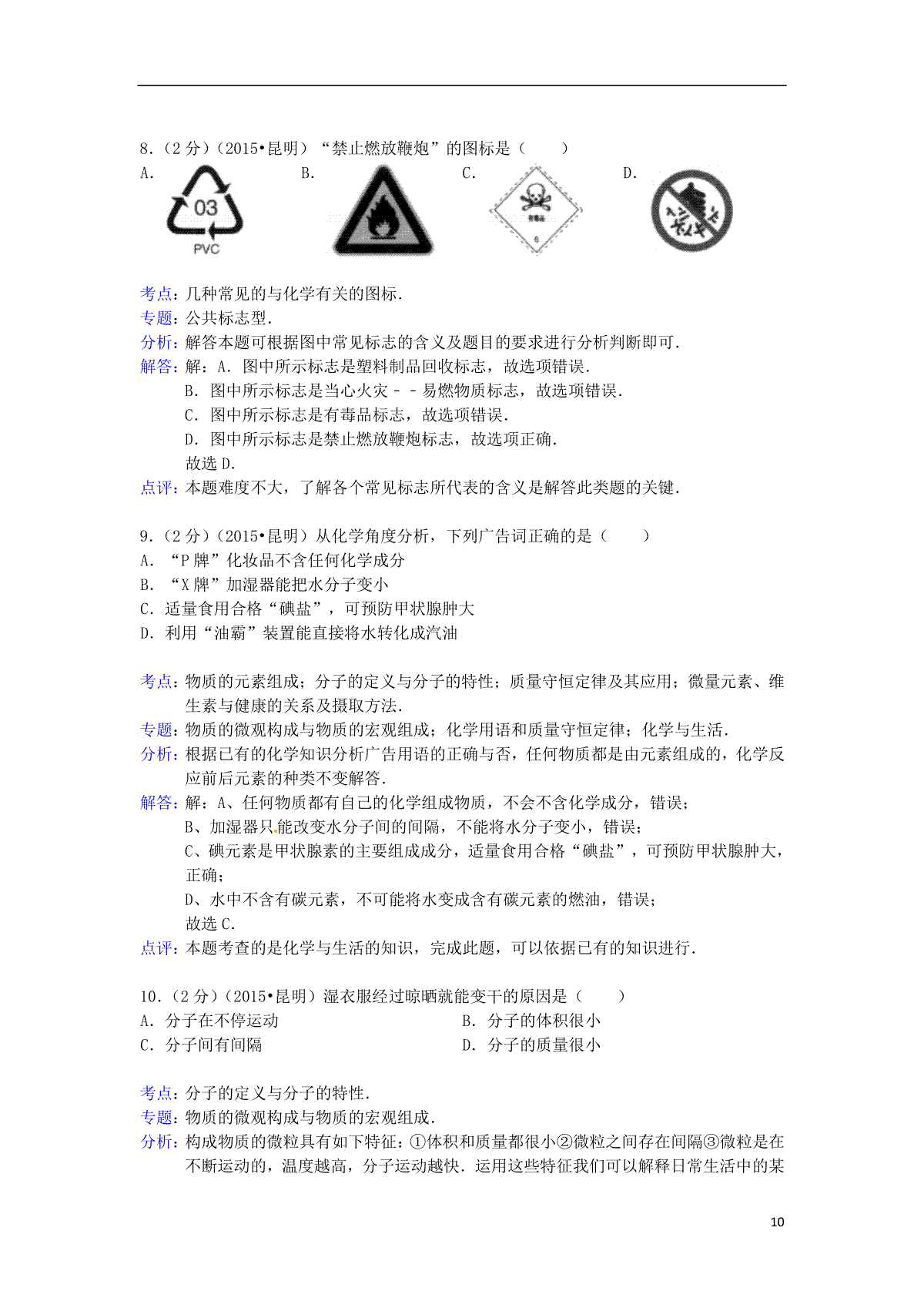 一、云南省昆明市2015年中考化学真题试题(含解析)