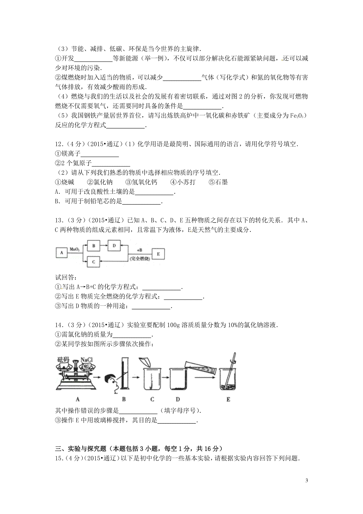 一、内蒙古通辽市2015年中考化学真题试题(含答案)