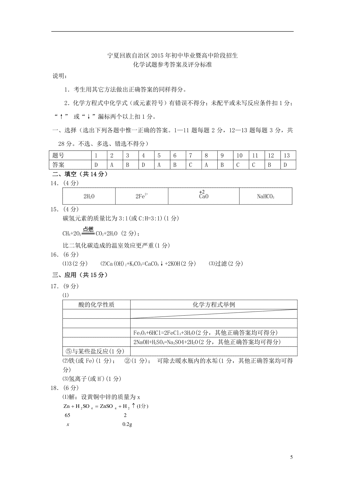 下载宁夏2015年中考化学真题试题(含答案)PDF格式或doc