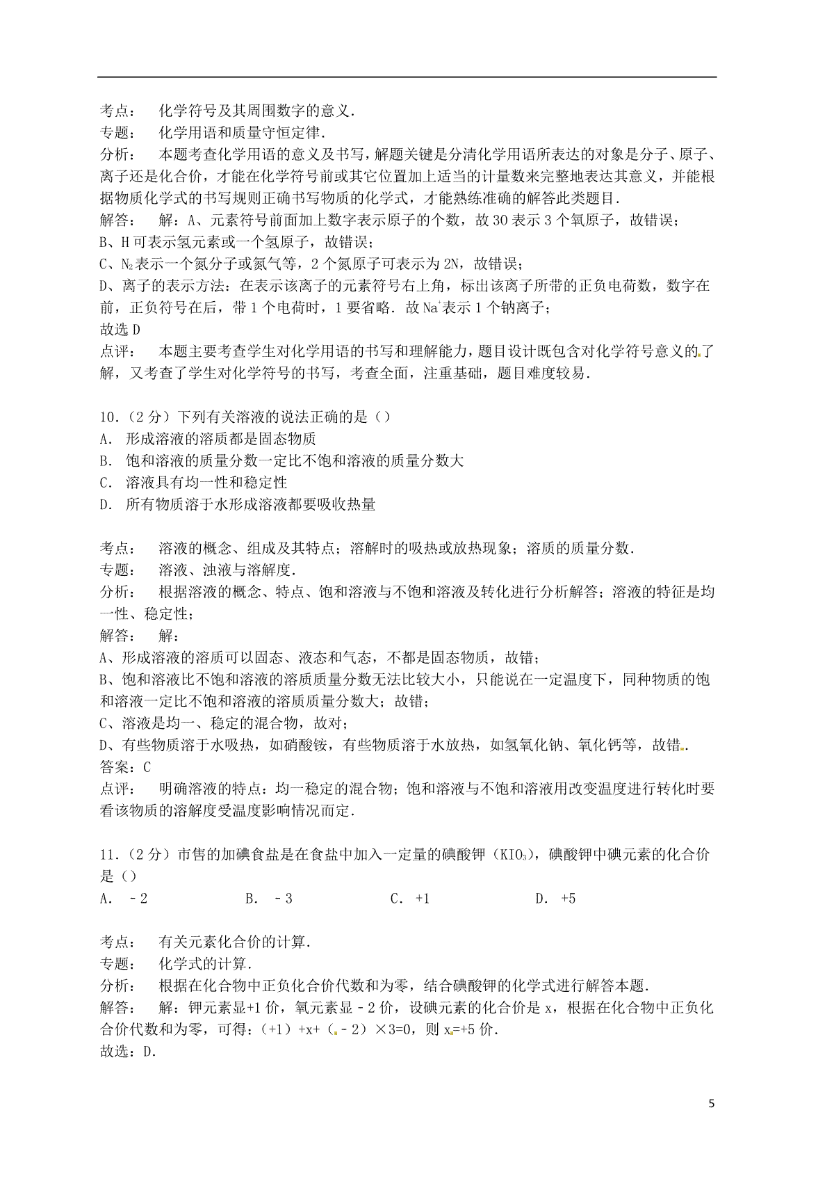 5.湖南省娄底市2015年中考化学真题试题(含答案)