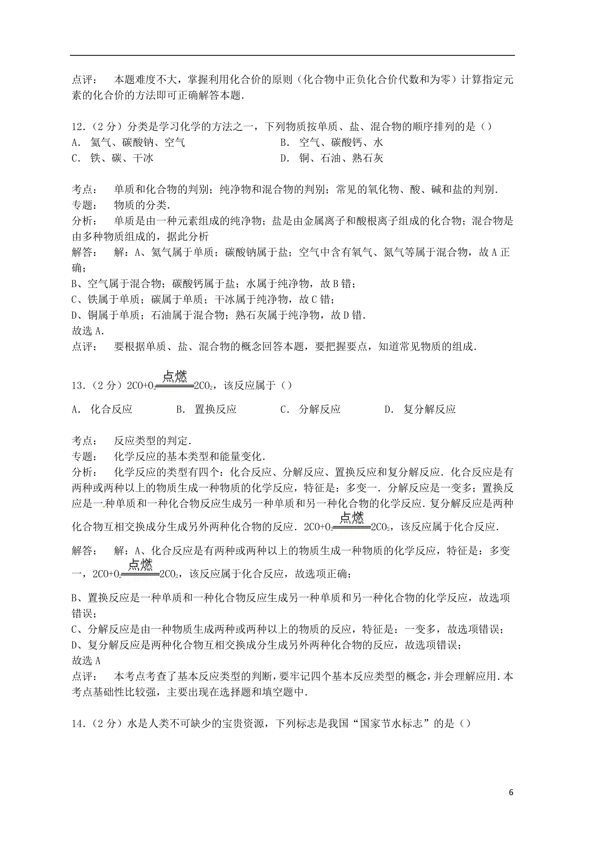 6.湖北省黄石市2015年中考化学真题试题(含答案)
