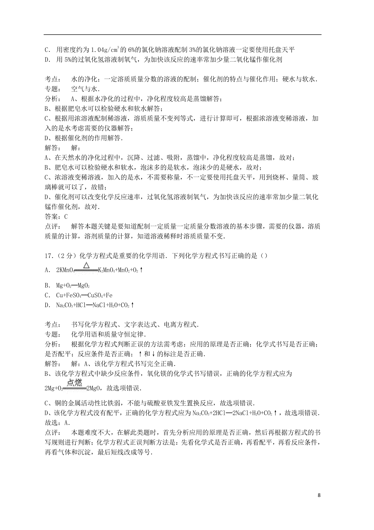 8.湖北省荆州市2015年中考化学真题试题(含答案)