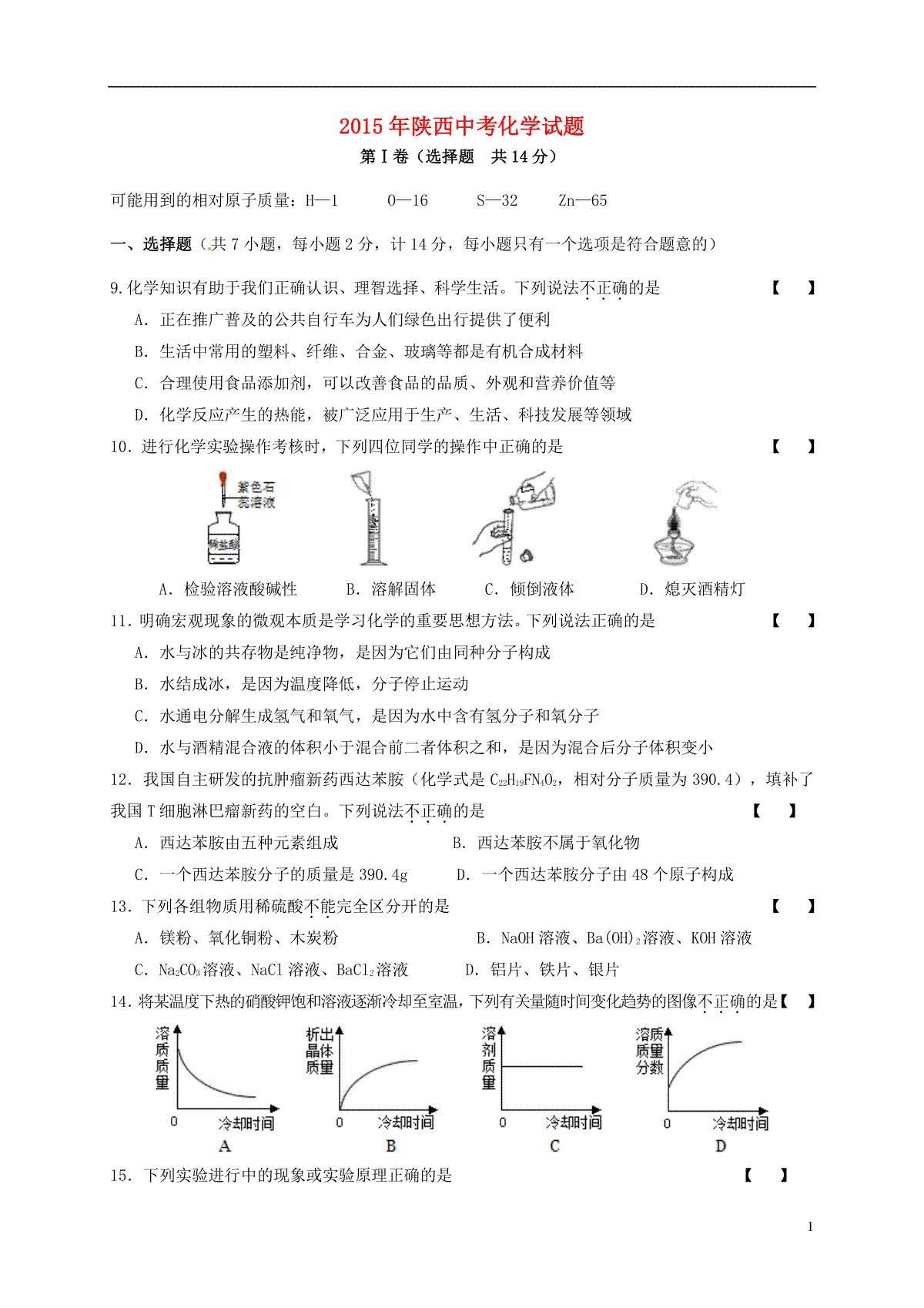 如果你想下载陕西省2015年中考化学真题试题(含答案)DOC或PDF版,请点击本文末链接!