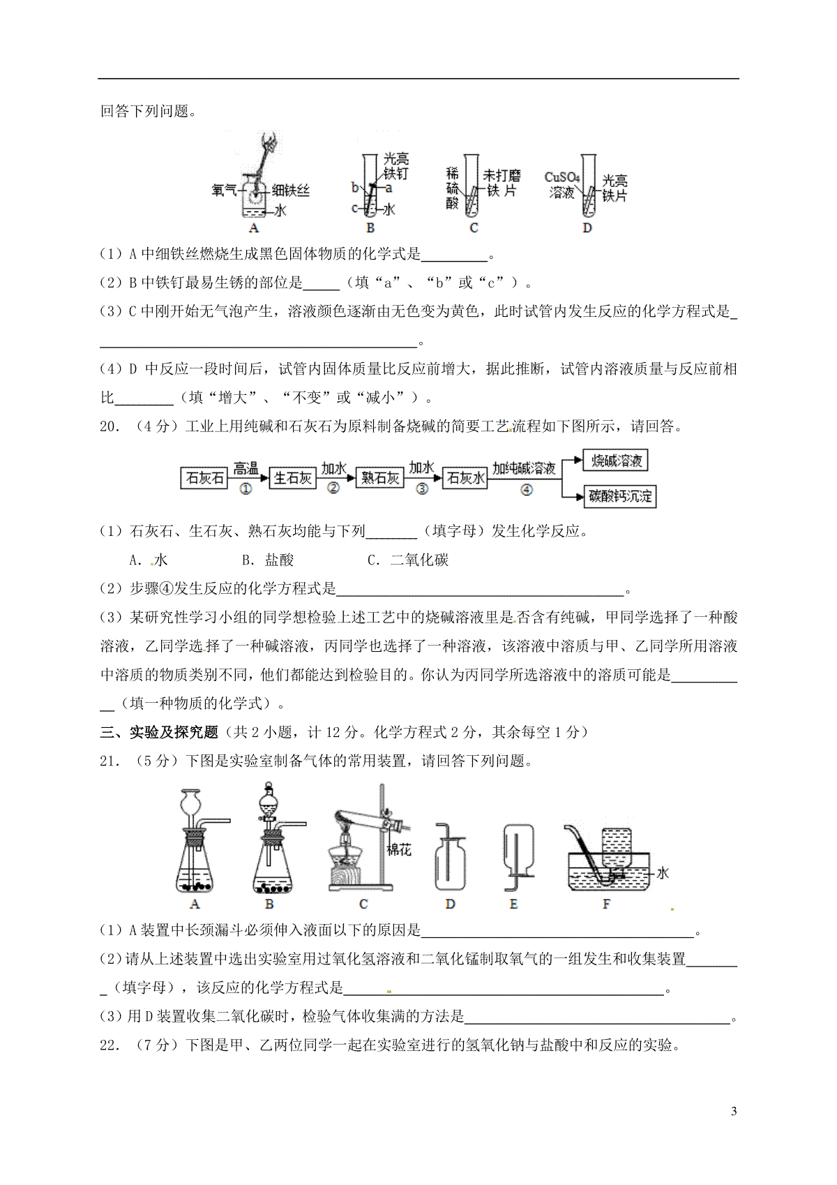3.重庆市2015年中考化学真题试题(A卷,含答案)
