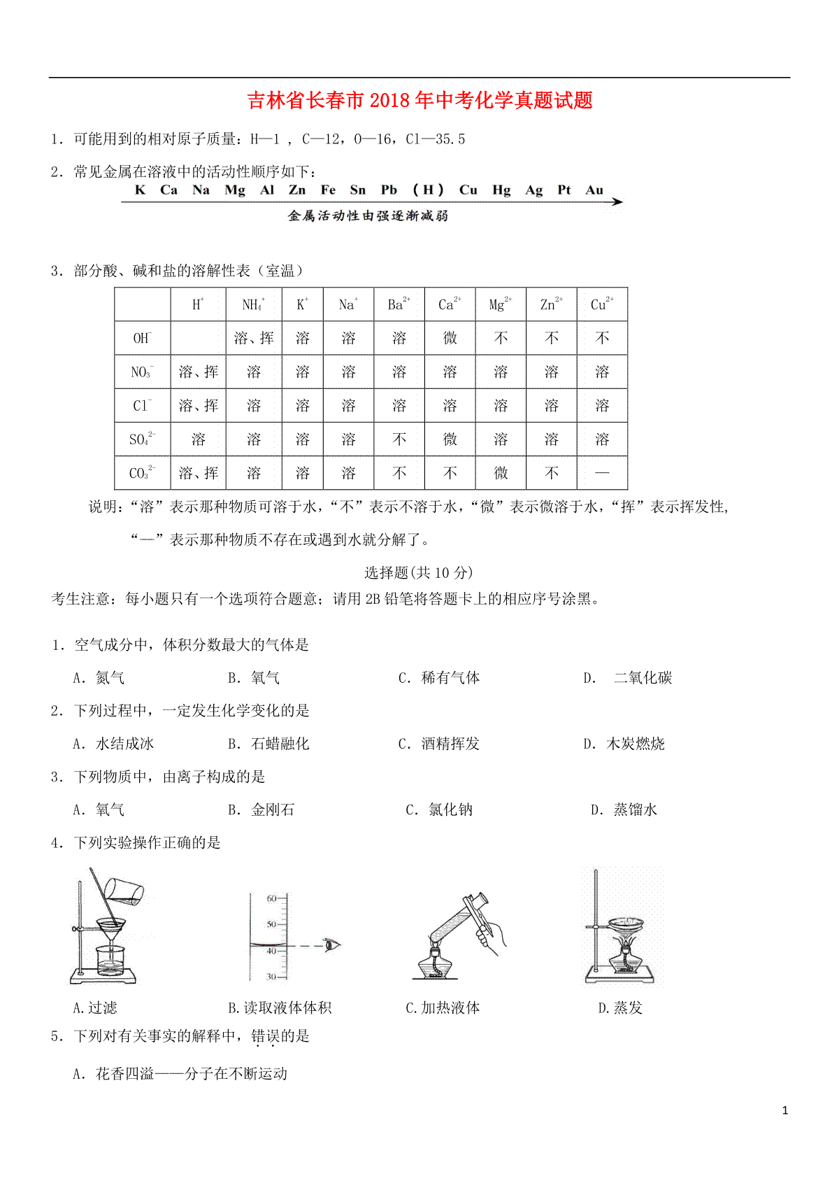 下载吉林省长春市2018年中考化学真题试题PDF格式或doc
