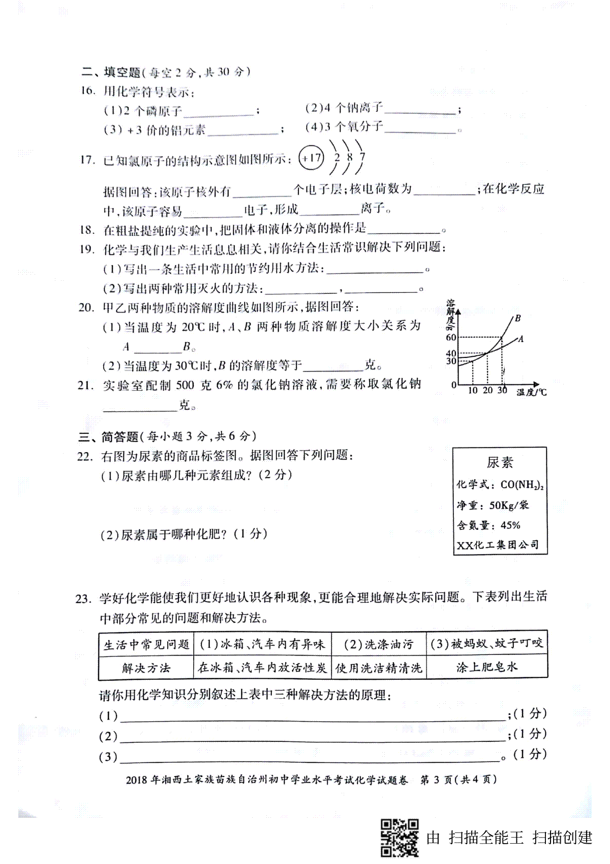 如果你想下载湖南省湘西土家族苗族自治州2018年中考化学真题试题DOC或PDF版,请点击本文末链接!