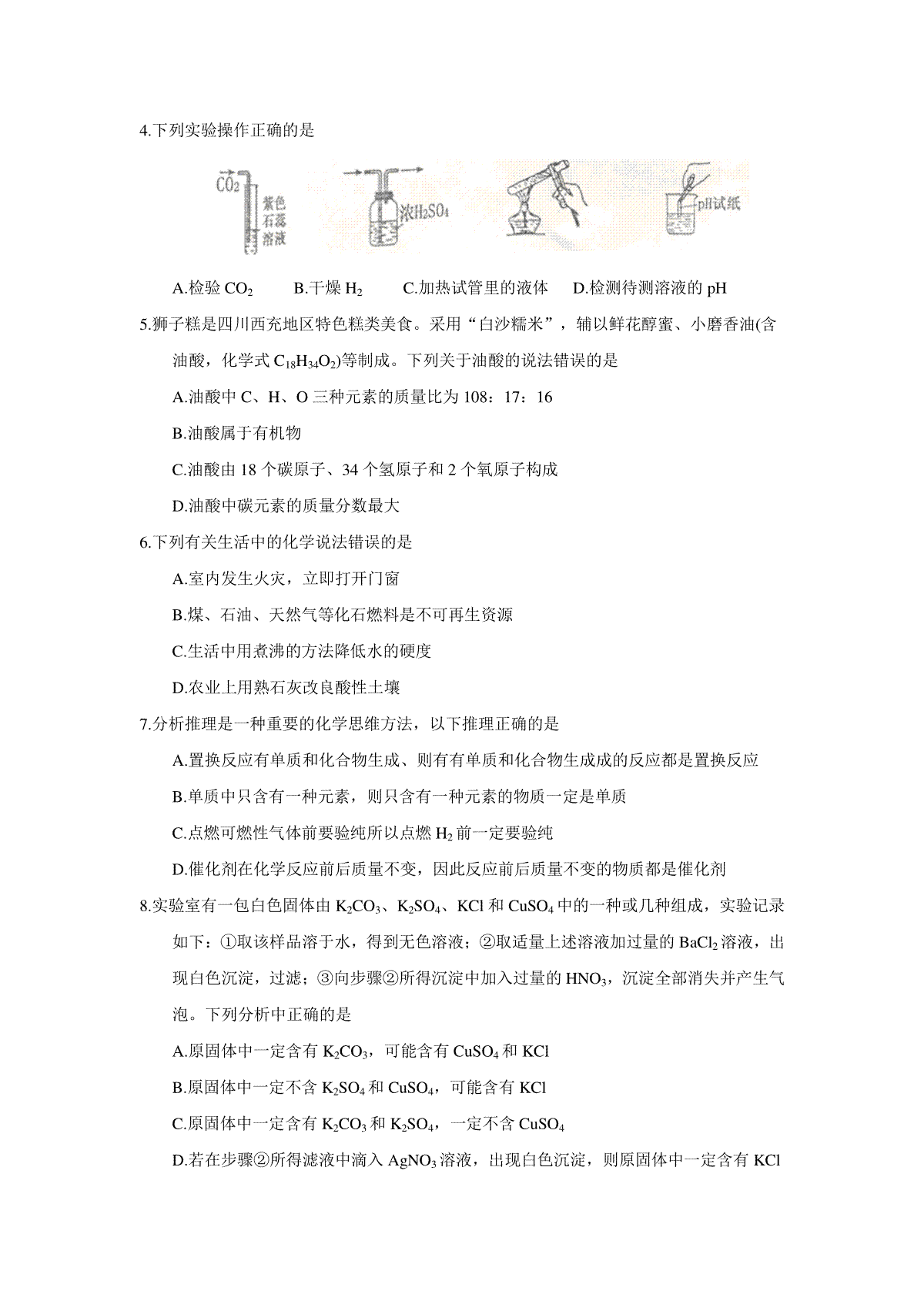 一、2018年四川省南充市中考理综(化学部分)试题(word版,含答案)