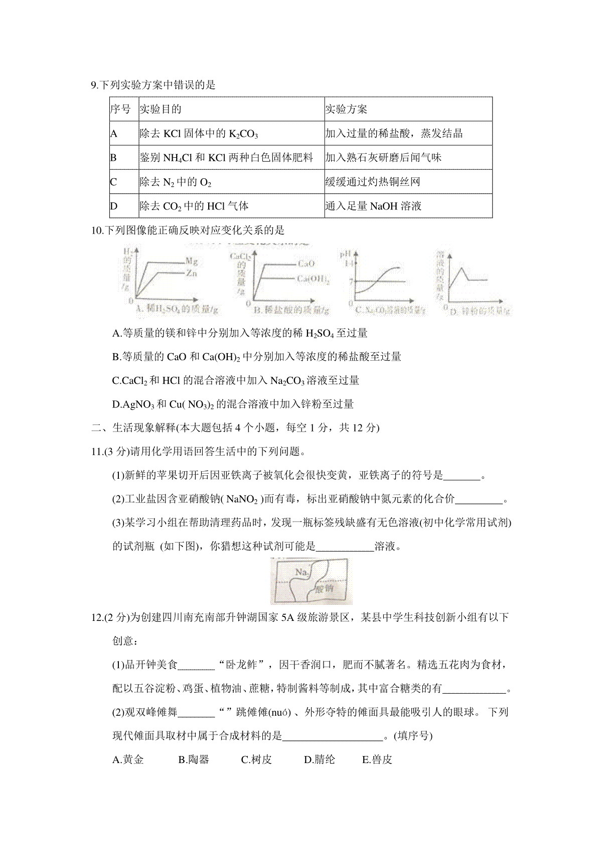 1.2018年四川省南充市中考理综(化学部分)试题(word版,含答案)