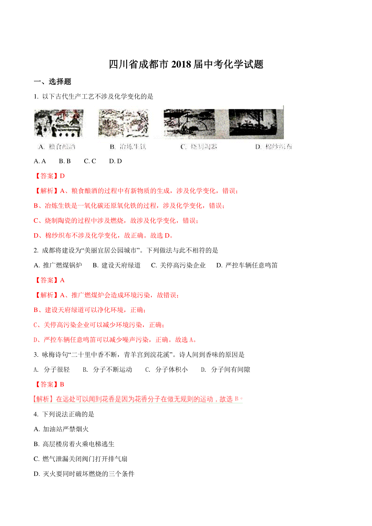 如果你想下载2018年四川省成都市中考化学试题(解析卷)DOC或PDF版,请点击本文末链接!