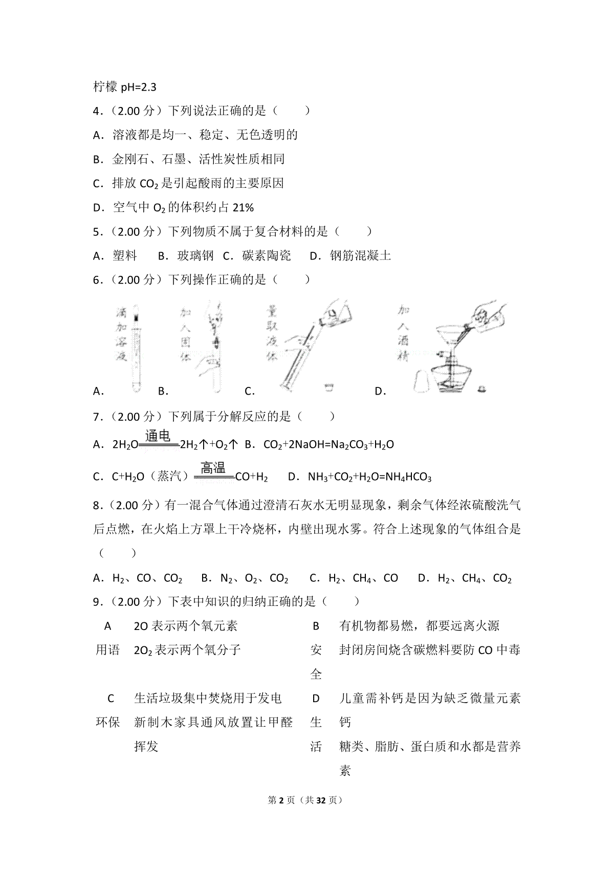 5.2018年四川省雅安市中考化学试题(word版,含答案)