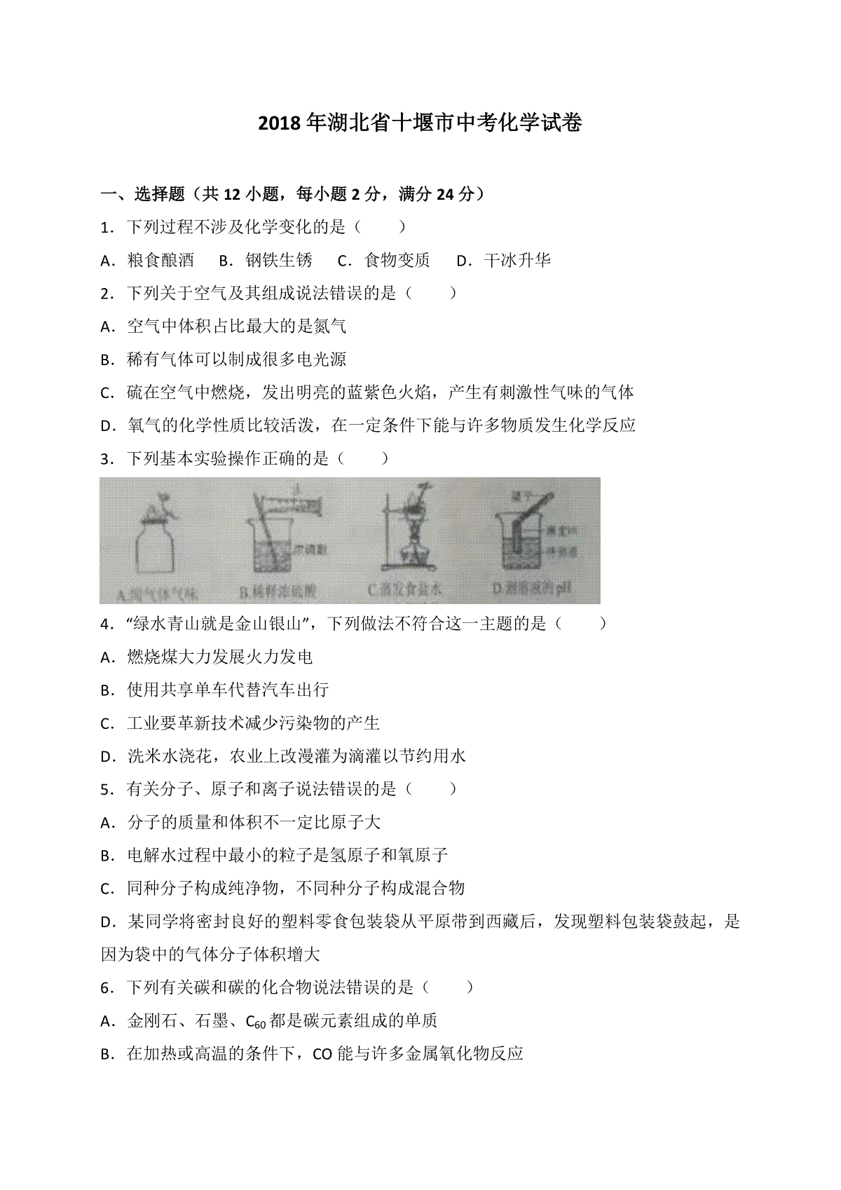 一、2018年湖北省十堰市中考理综(化学部分)试题(word版,含解析)