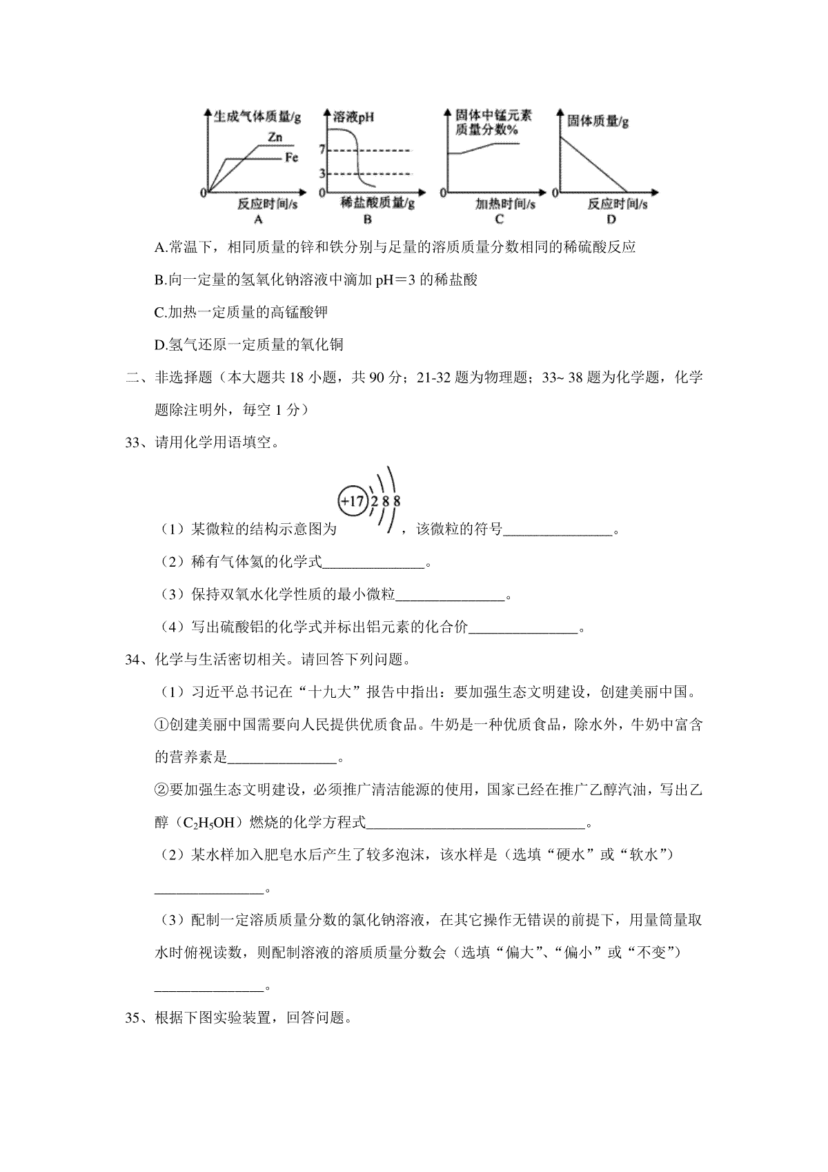 4.2018年浙江省衢州市中考化学试题(word版,含答案)