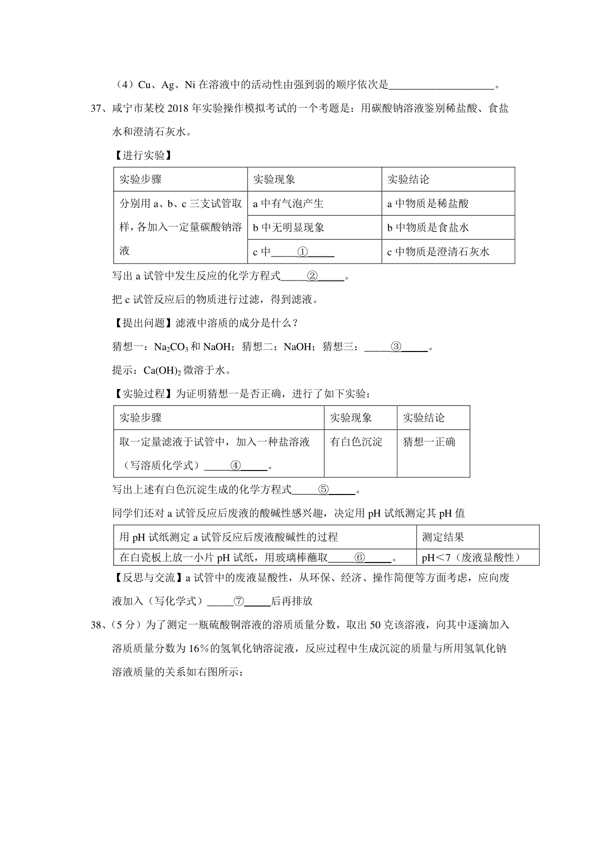 1.2018年湖北省咸宁市中考化学试题(word版,含答案)