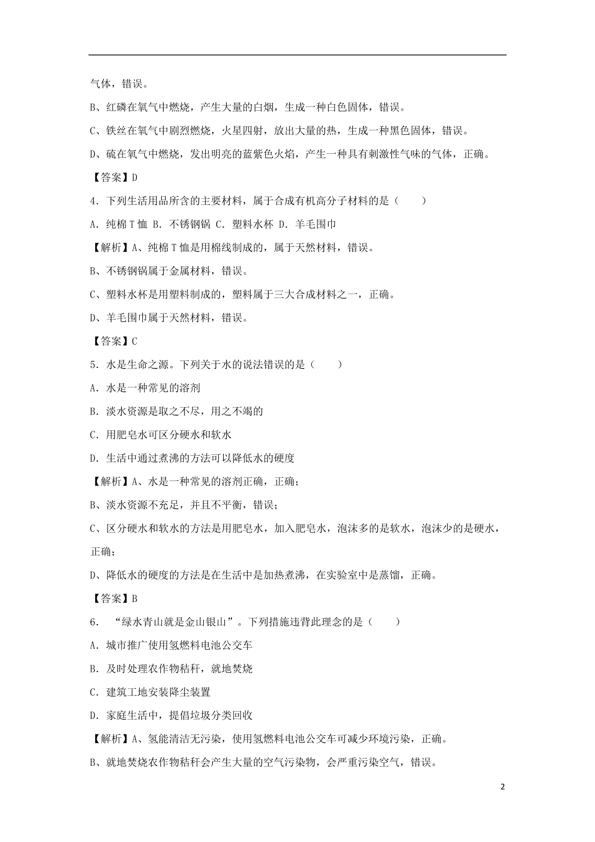 2.四川省乐山市2018年中考化学真题试题(含答案)