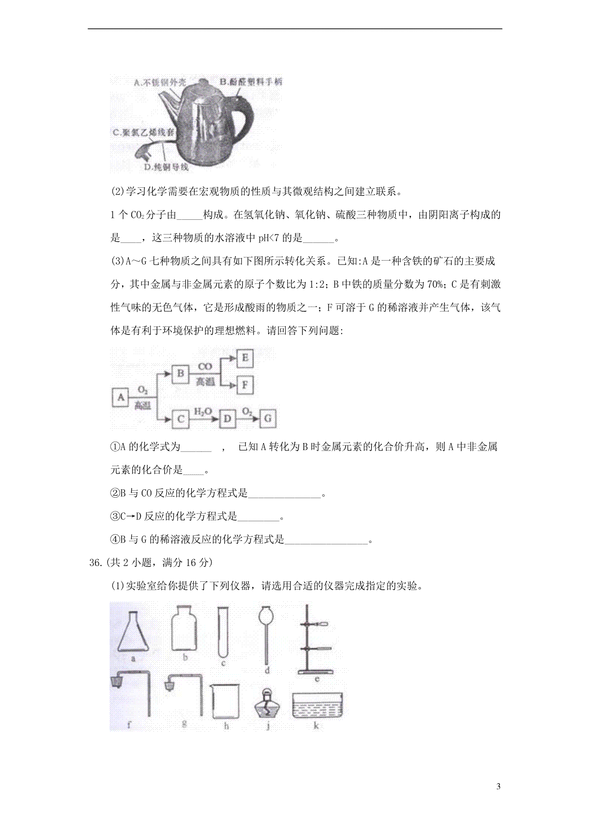 河南省2016年中考化学真题试题(扫描版,含答案)