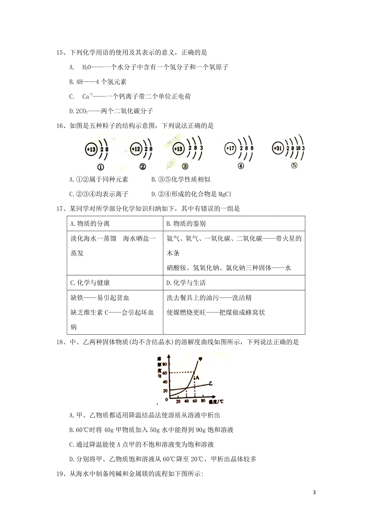 3.山东省枣庄市2018年中考化学真题试题(含答案)
