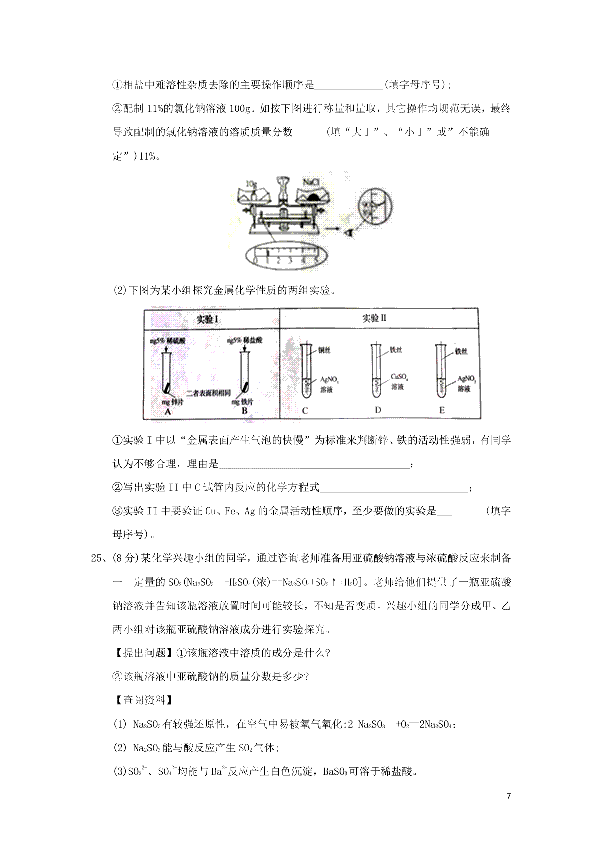 7.山东省威海市2018年中考化学真题试题(含答案)
