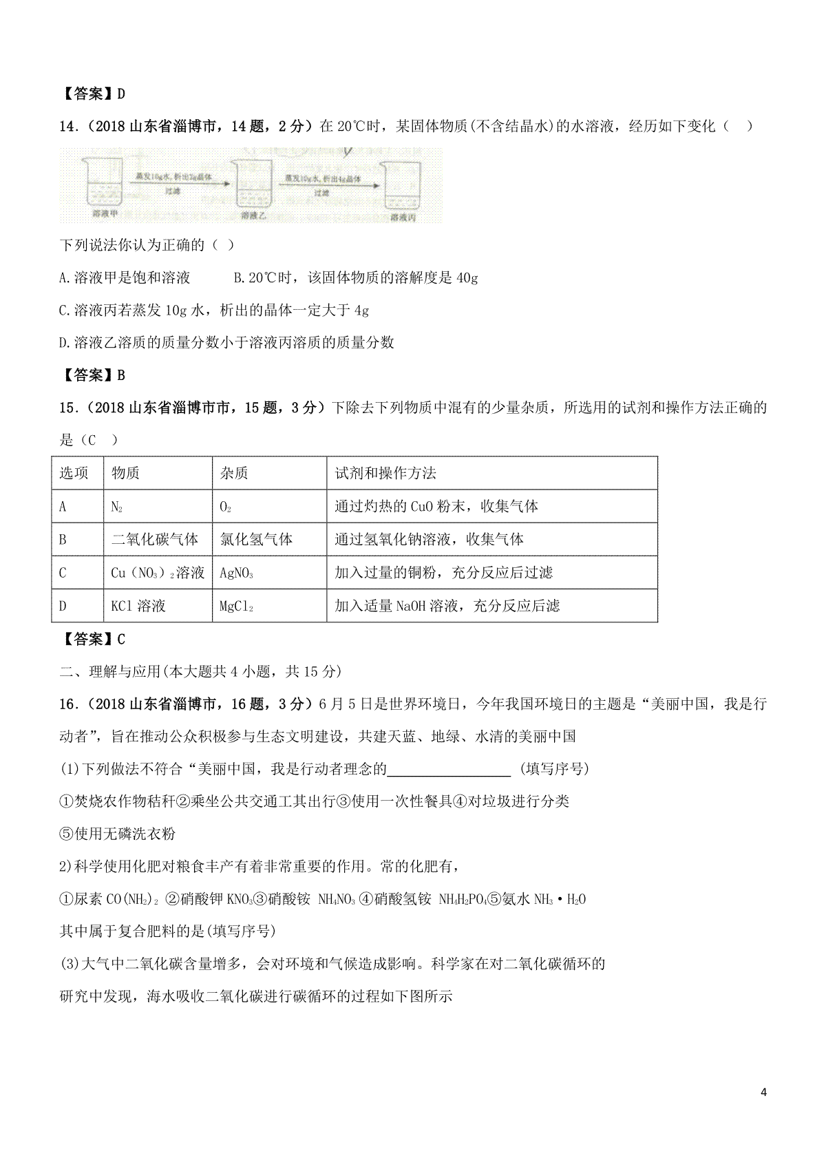 1.山东省淄博市2018年中考化学真题试题(含答案)