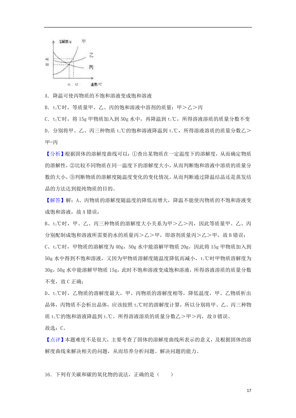 浙江省宁波市2016年中考化学真题试题(含解析)