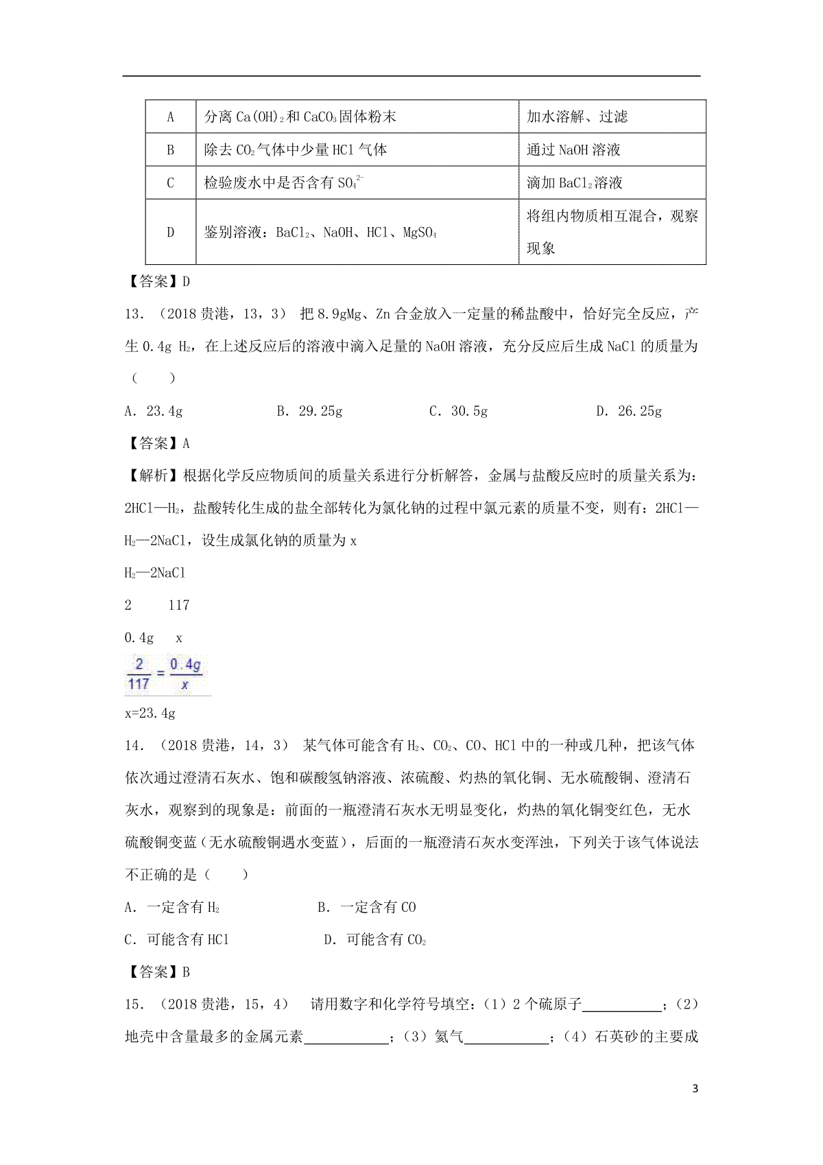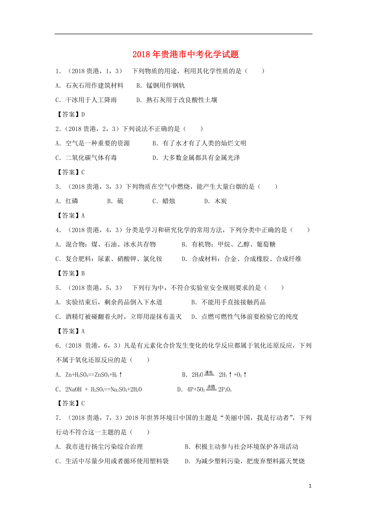 1.广西贵港市2018年中考化学真题试题(含答案)