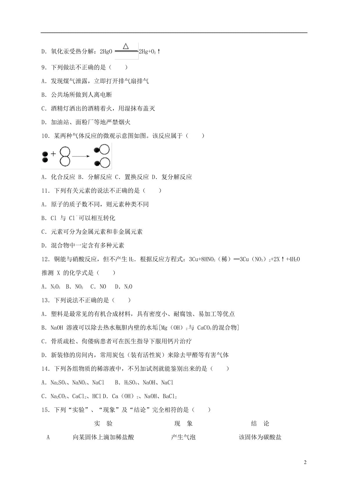2.湖南省湘西土家族苗族自治州2018年中考化学真题试题(含解析)