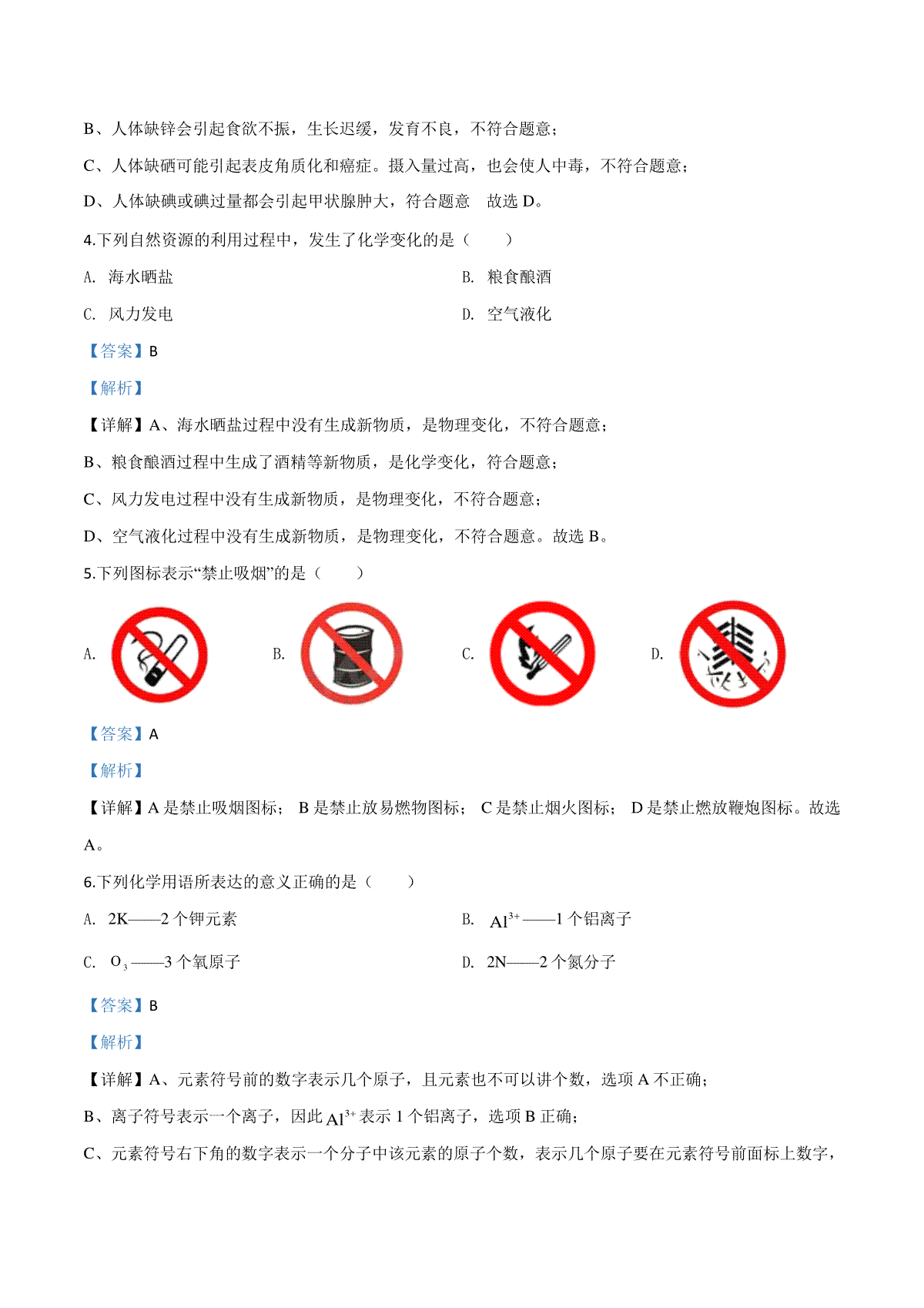 一、精品解析:江苏省无锡市2019年中考化学试题(解析版)