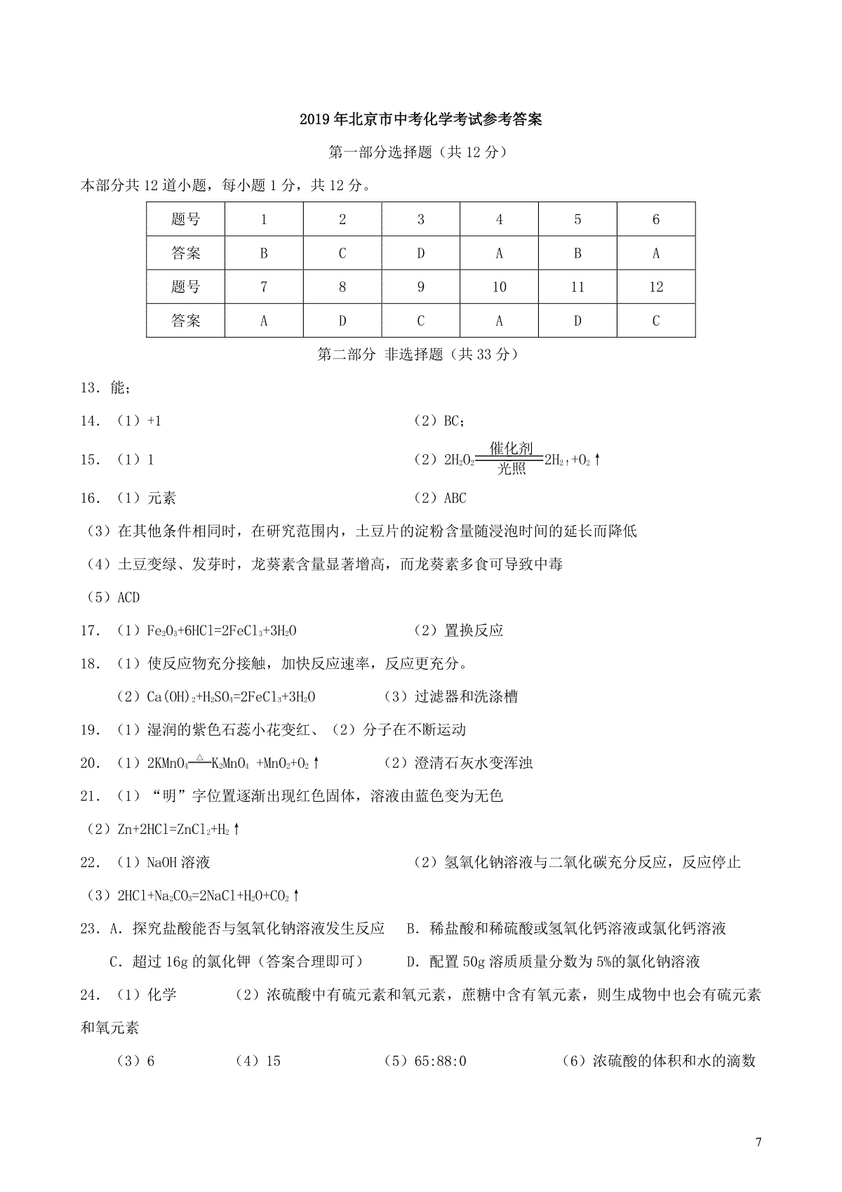 7.云南省2019年中考化学真题试题