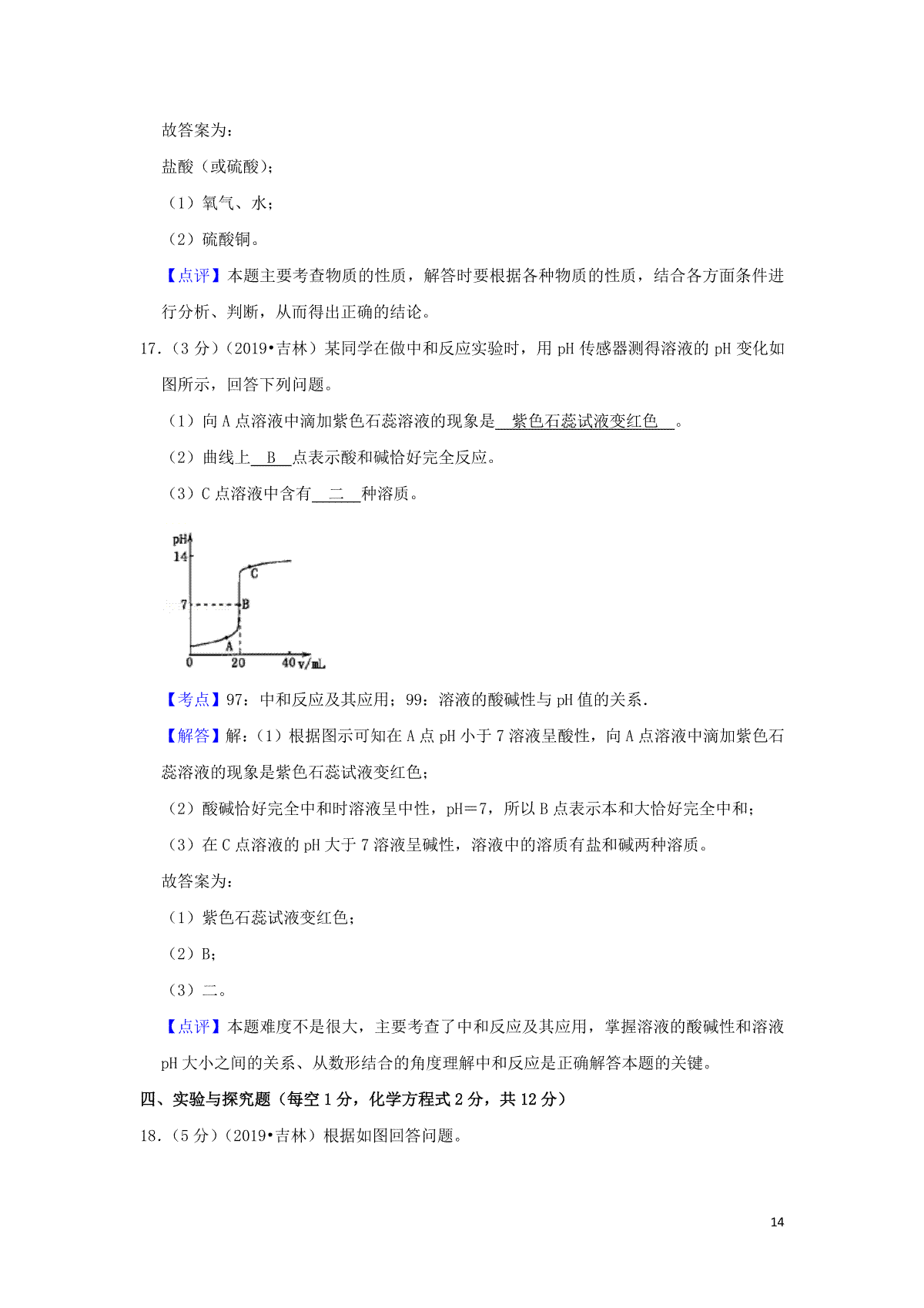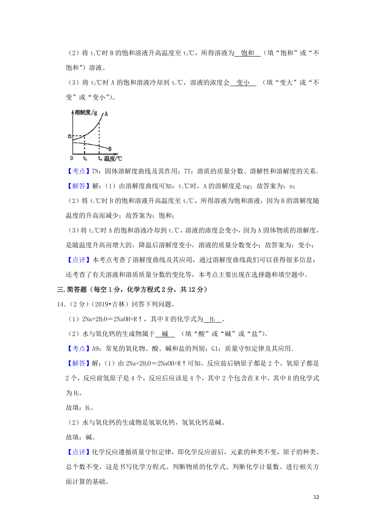 2.吉林省2019年中考化学真题试题