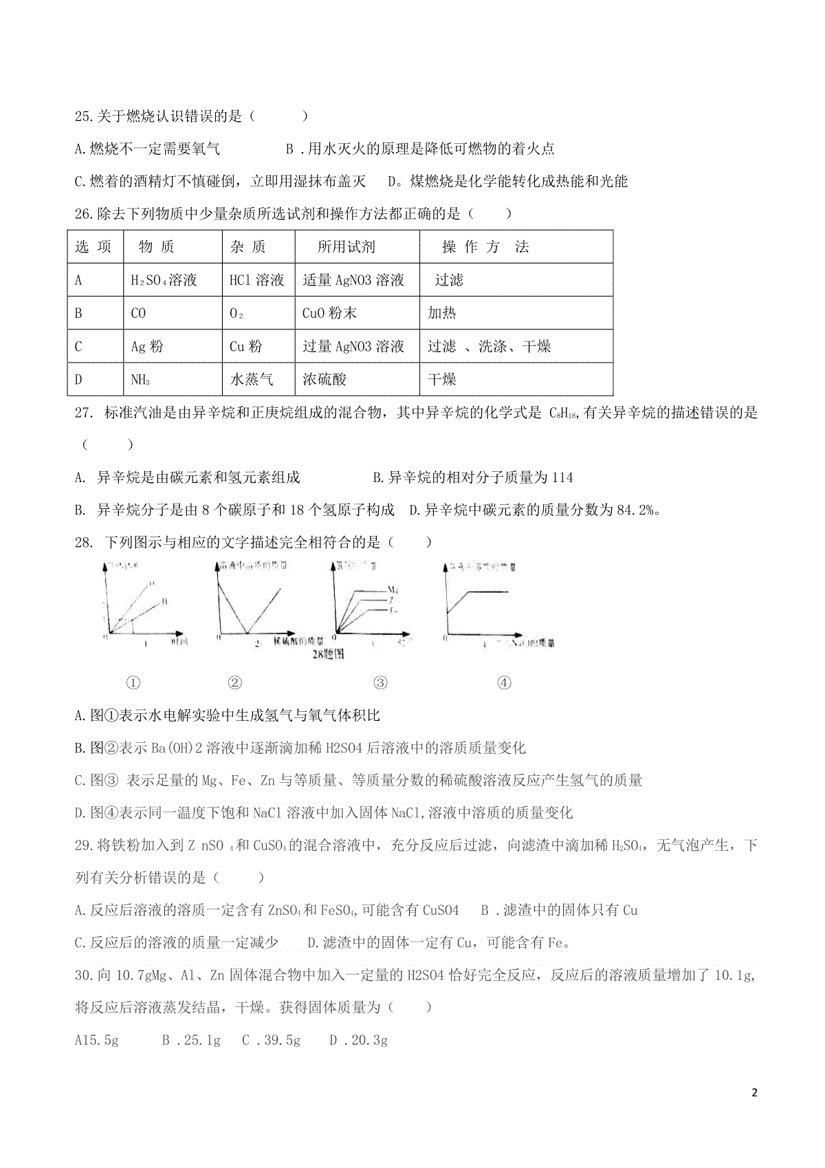 2.四川省南充市2019年中考理综(化学部分)真题试题