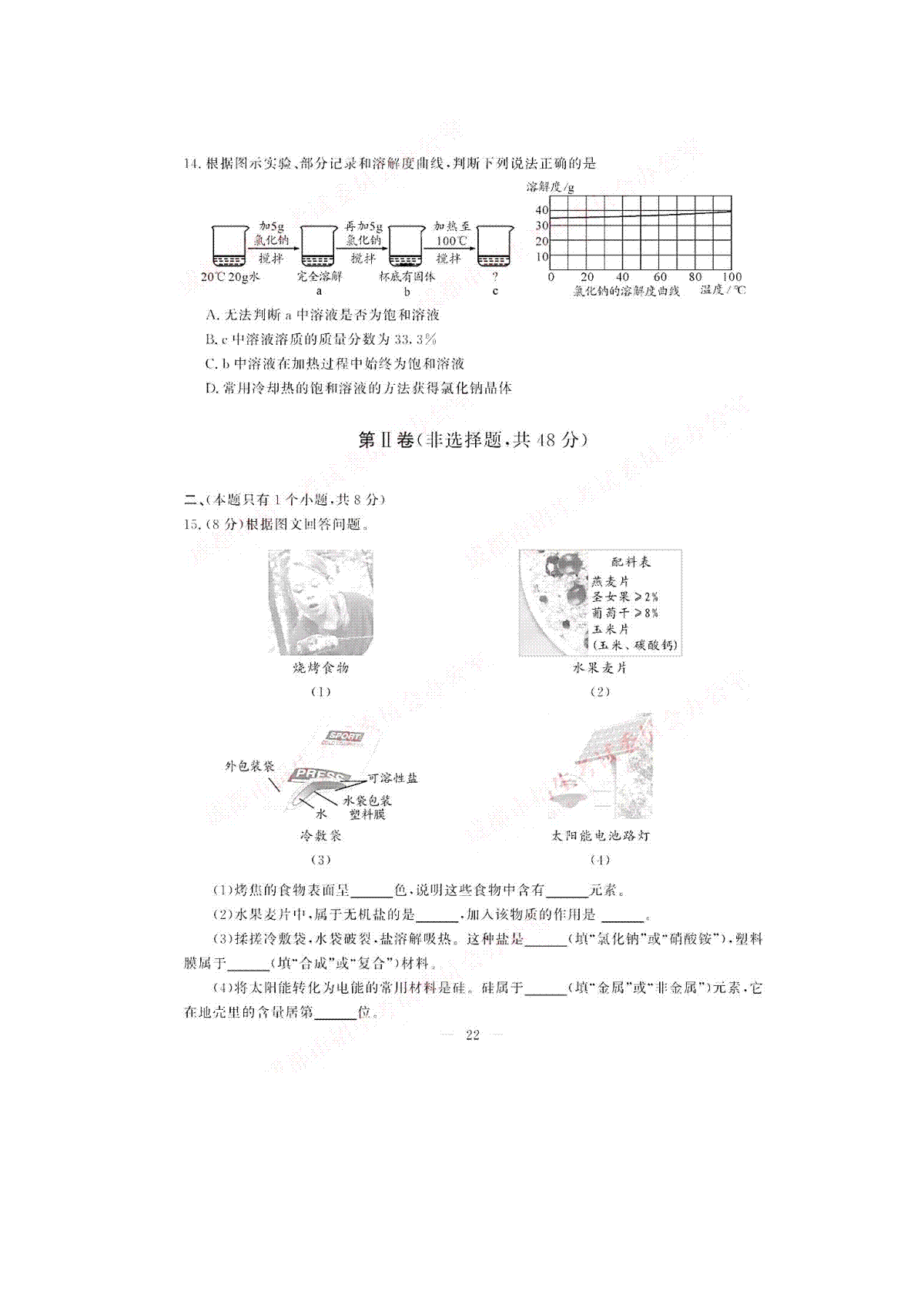河南省2016年中考化学真题试题(扫描版,含答案)