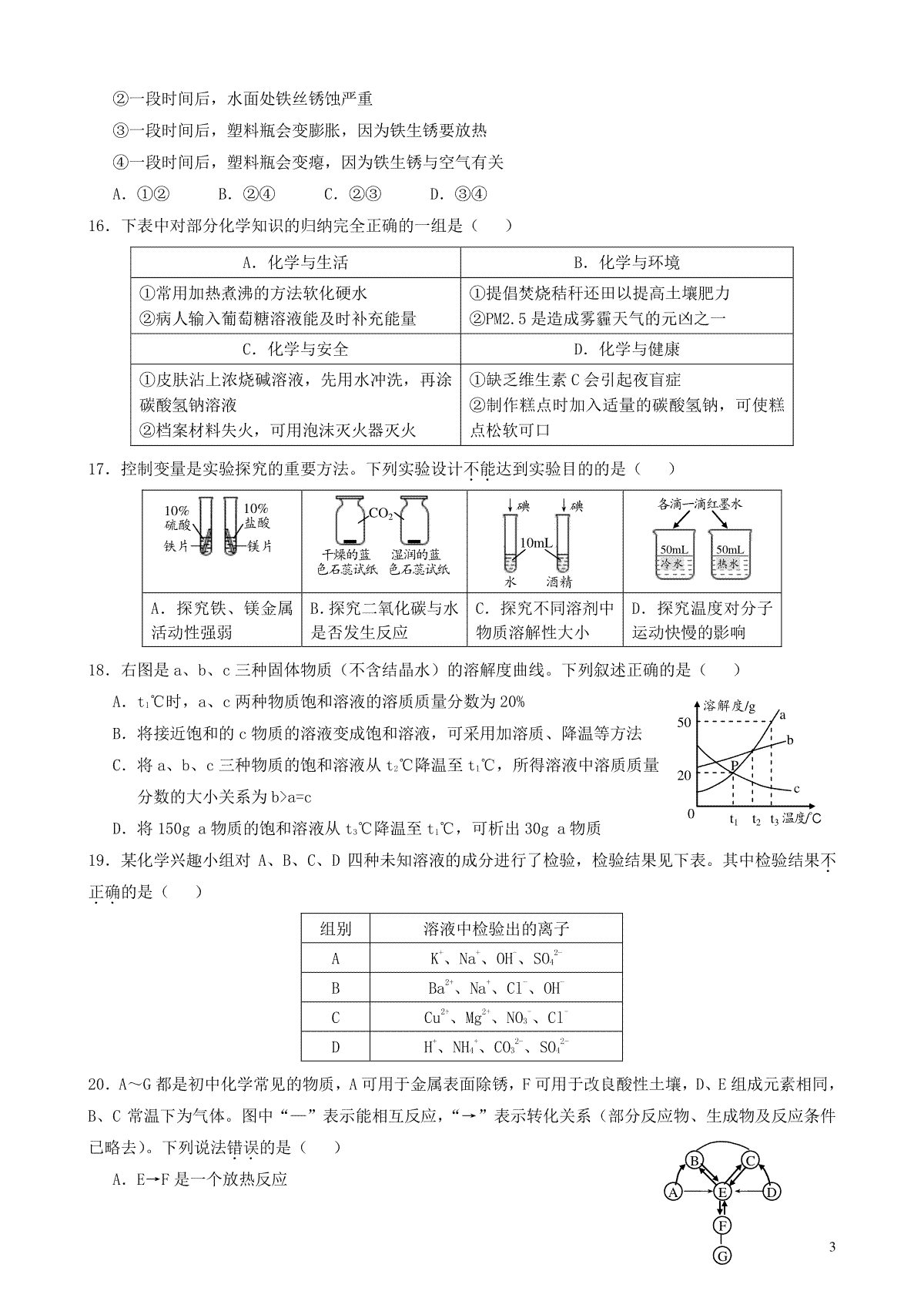 一、山东省泰安市2019年中考化学真题试题
