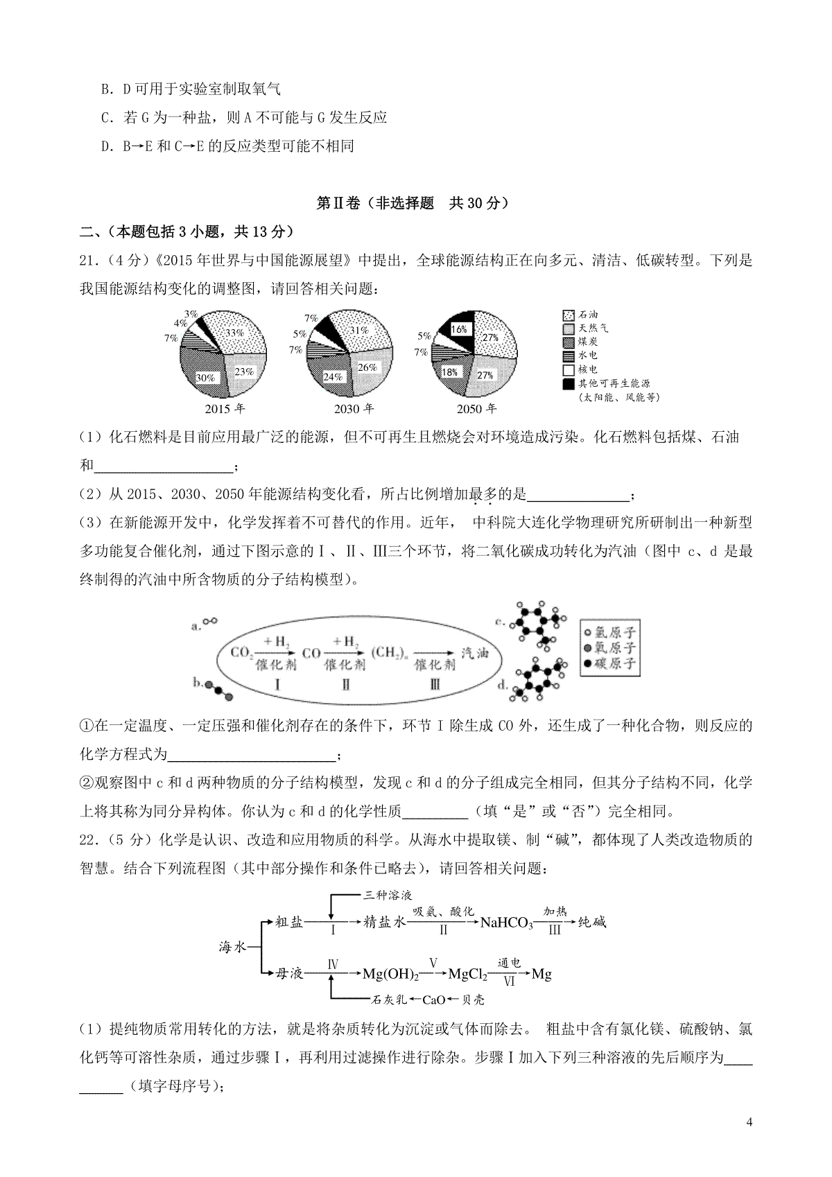 4.山东省德州市2019年中考化学真题试题