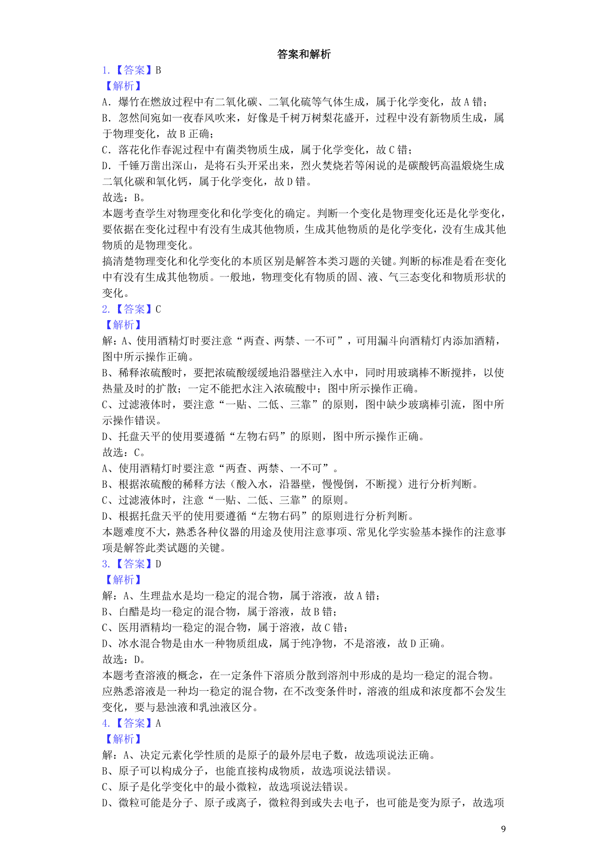 3.山东省济宁市2019年中考化学真题试题(含解析)