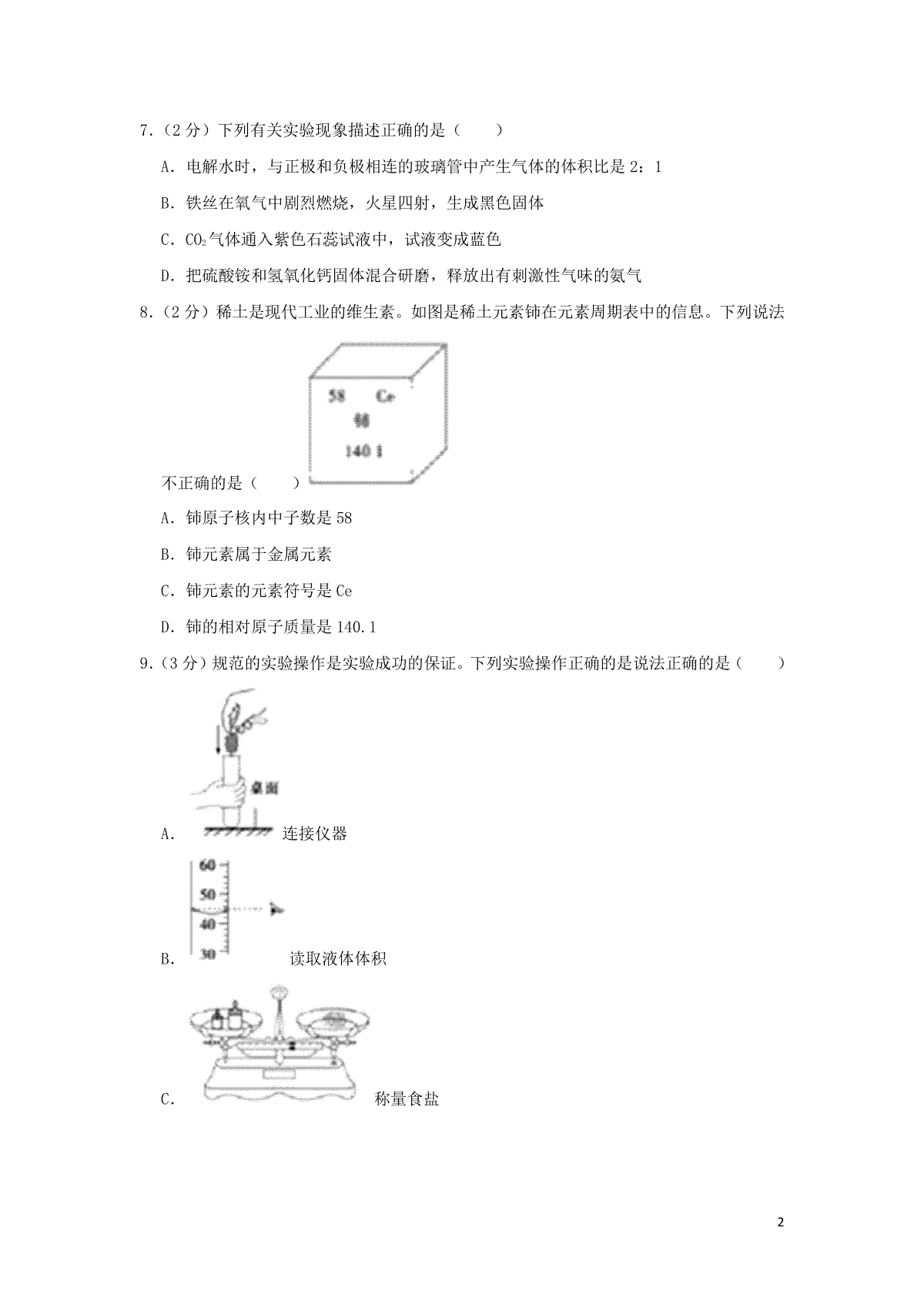 7.山东省枣庄市2019年中考化学真题试题(含解析)