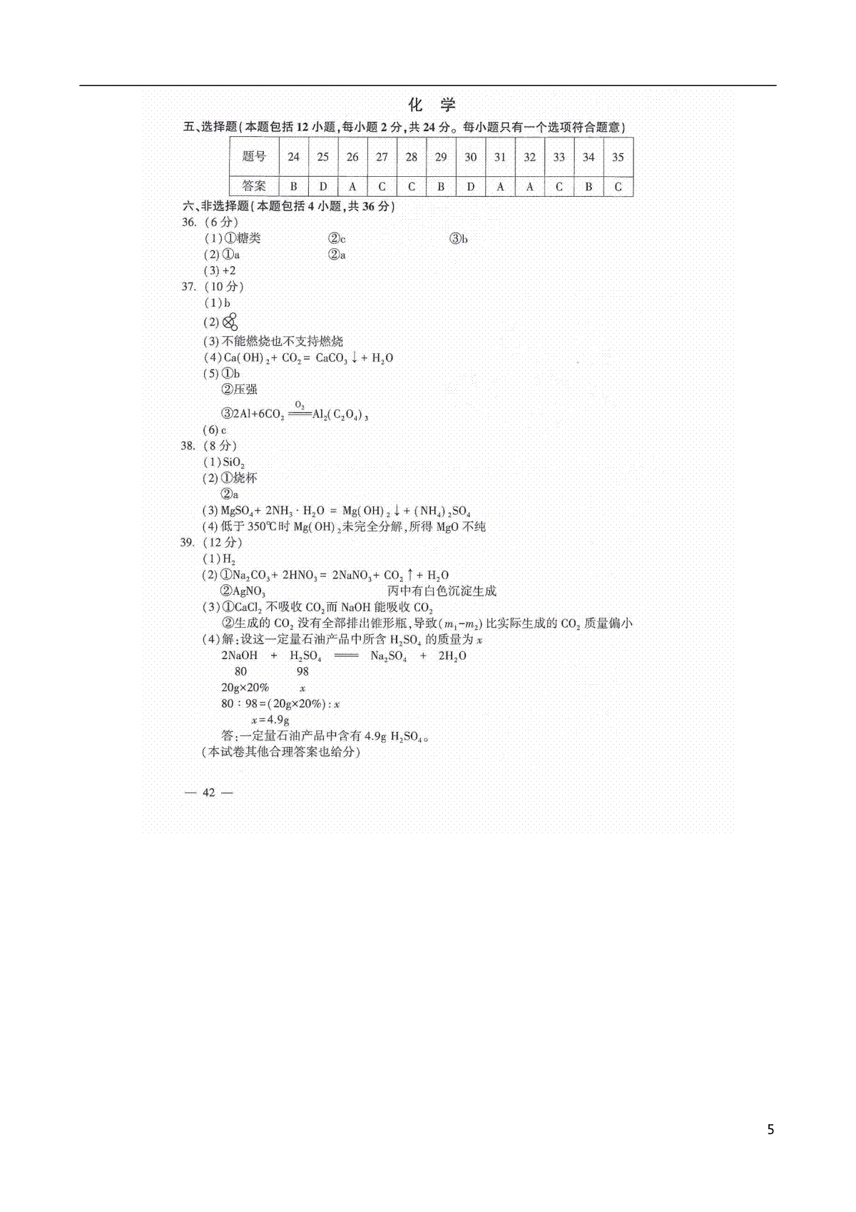 河南省2016年中考化学真题试题(扫描版,含答案)