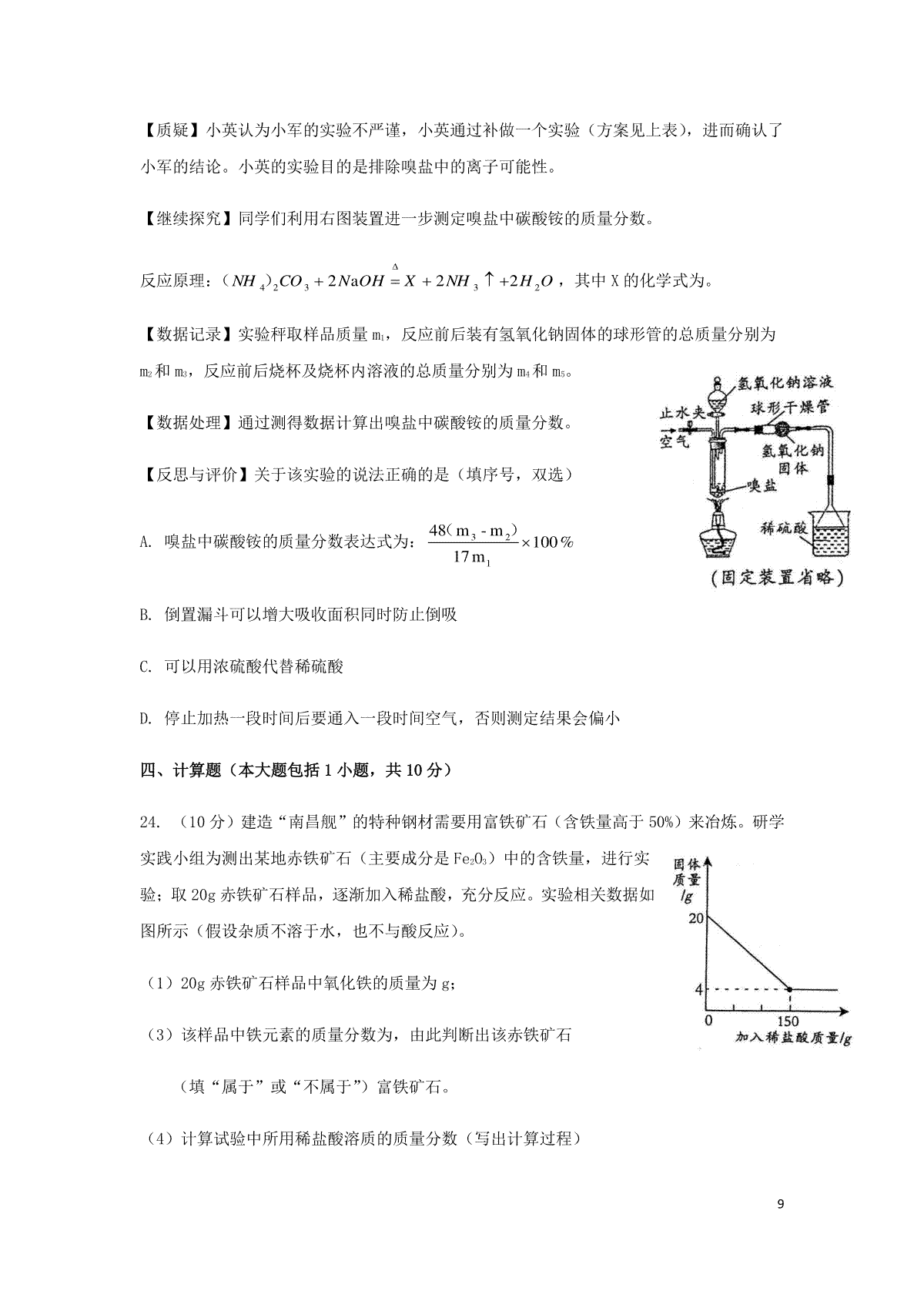 7.内蒙古包头市2019年中考化学真题试题(扫描版)