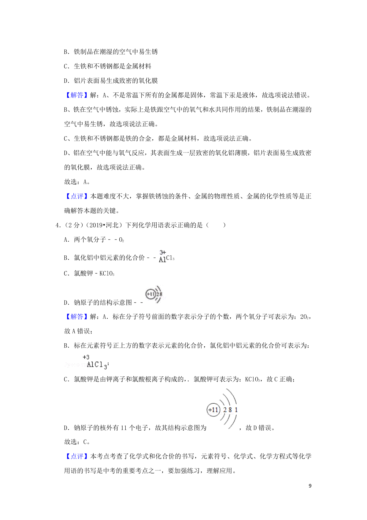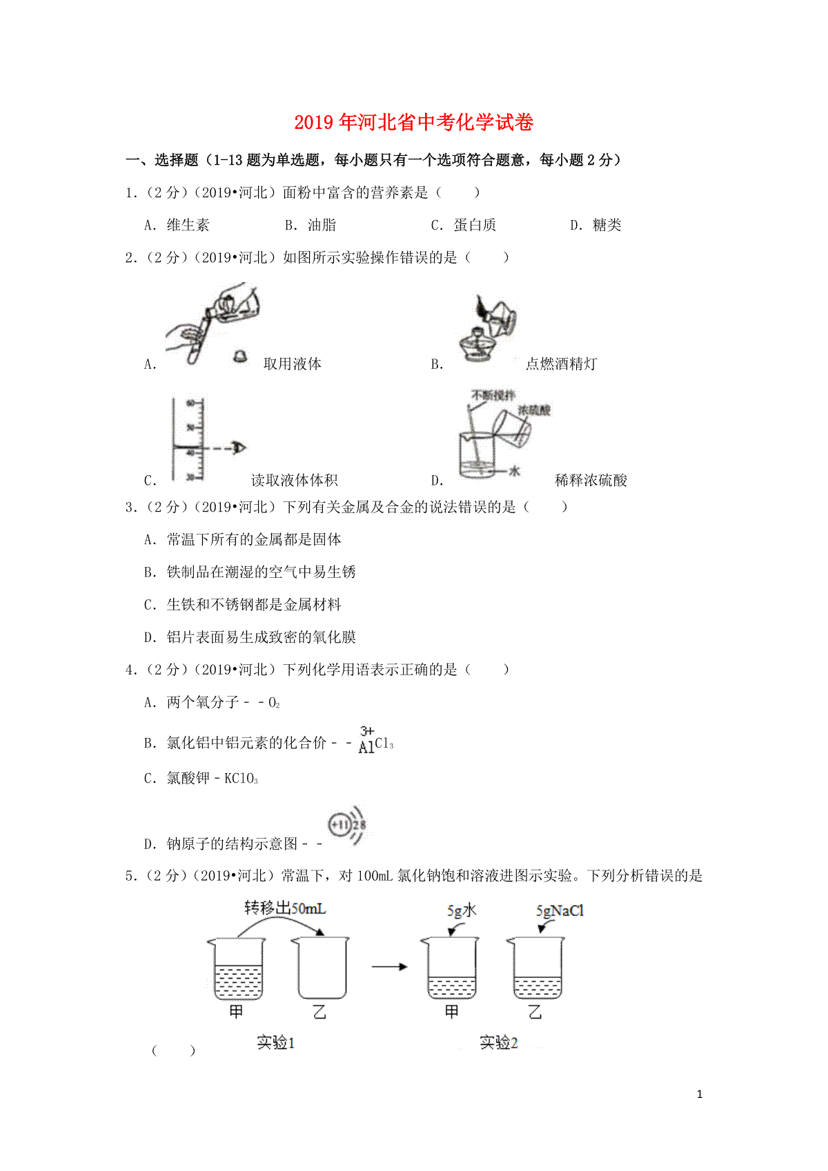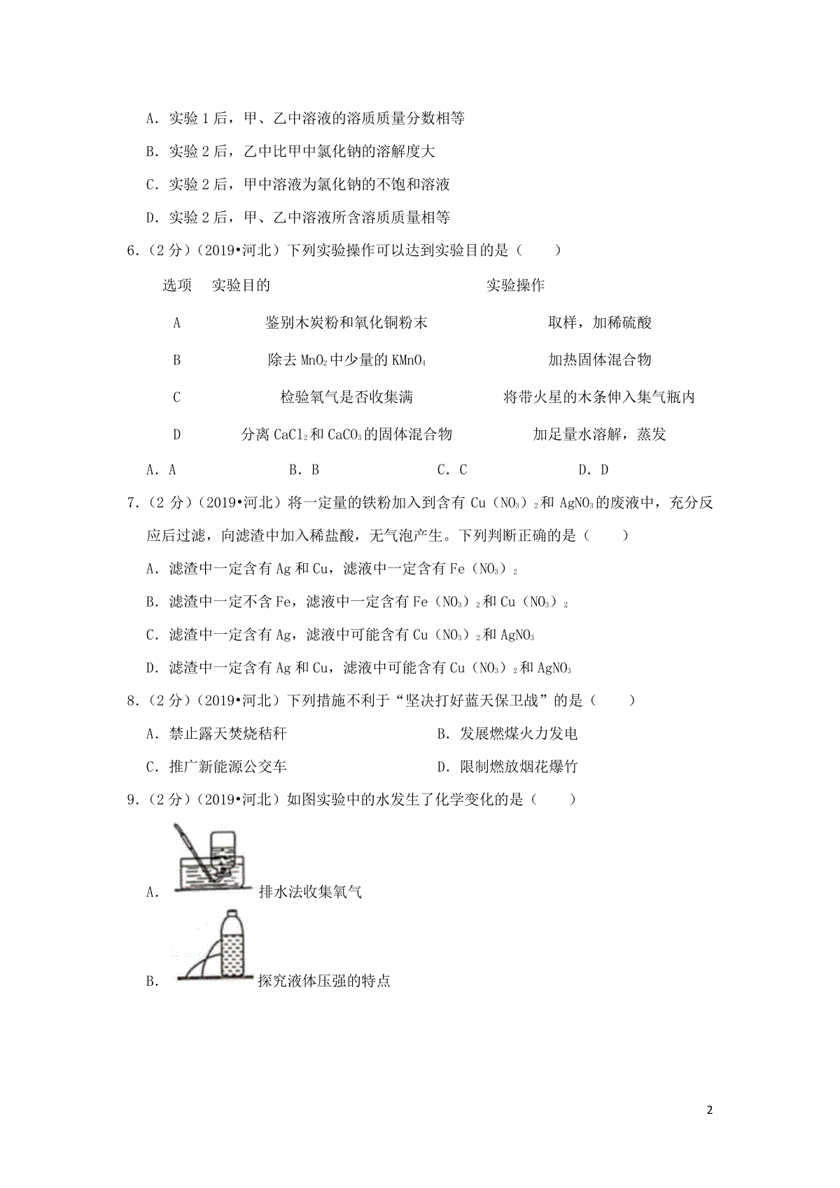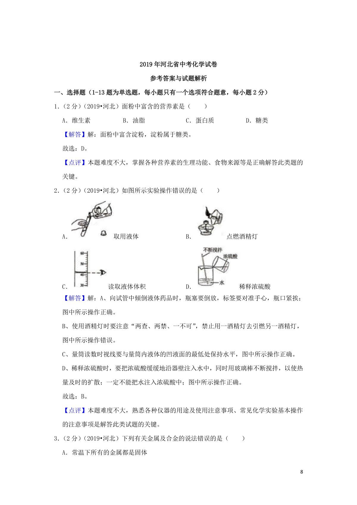 下载河北省2019年中考化学真题试题(含解析)PDF格式或doc