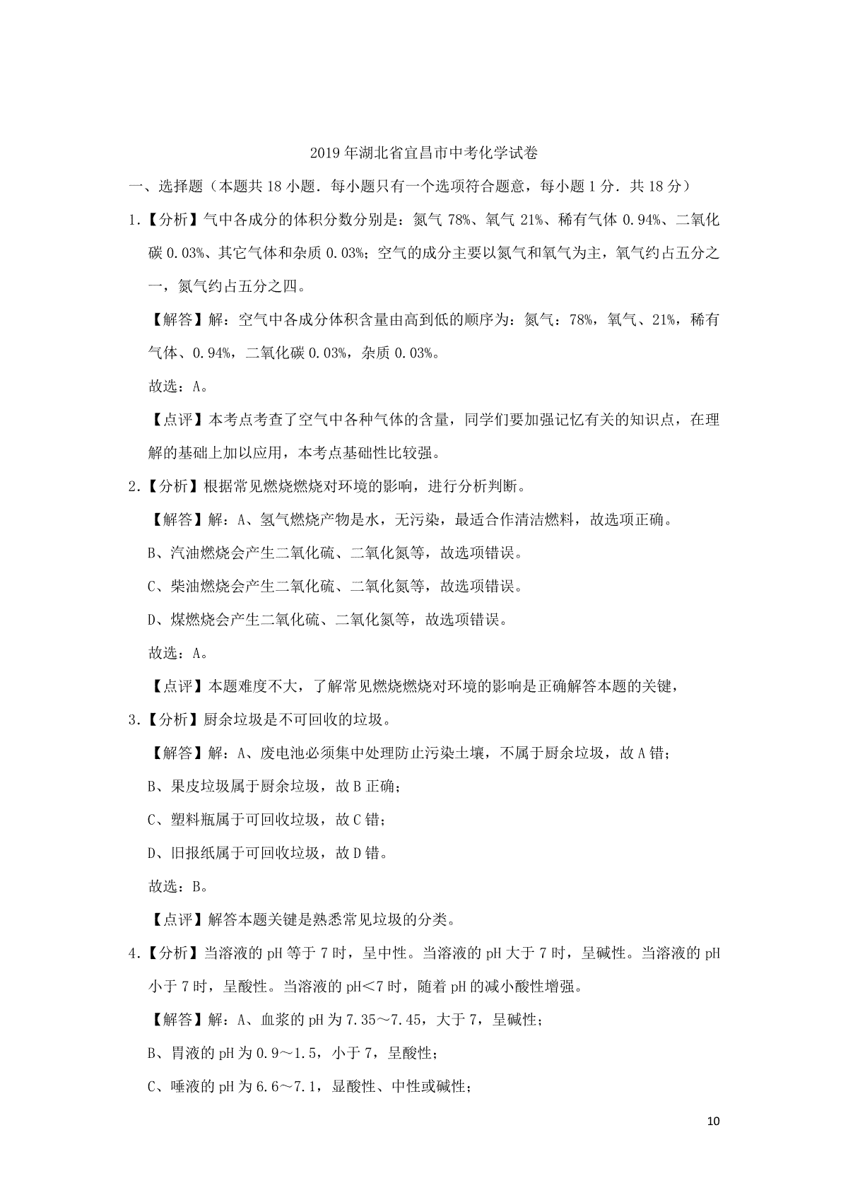 1.湖北省宜昌市2019年中考化学真题试题(含解析)
