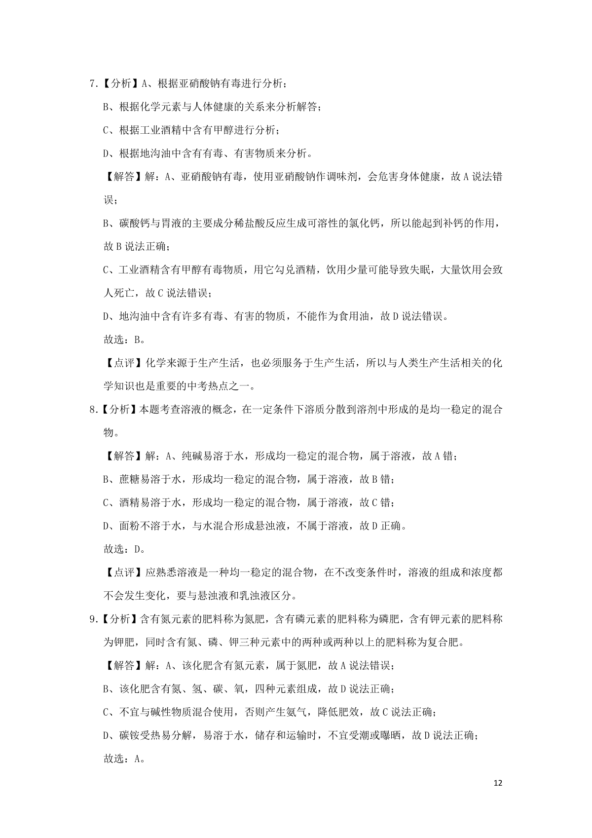 7.浙江省绍兴市2019年中考化学真题试题(含解析)